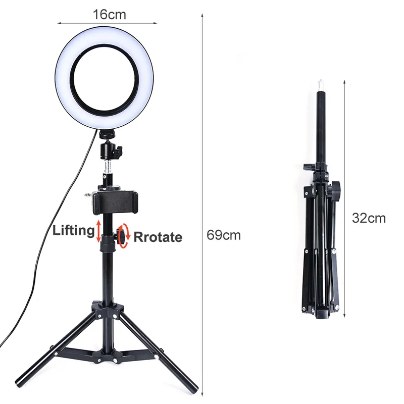 Светодиодный кольцевой светильник для селфи 3 цвета с регулируемой яркостью и держателем для телефона