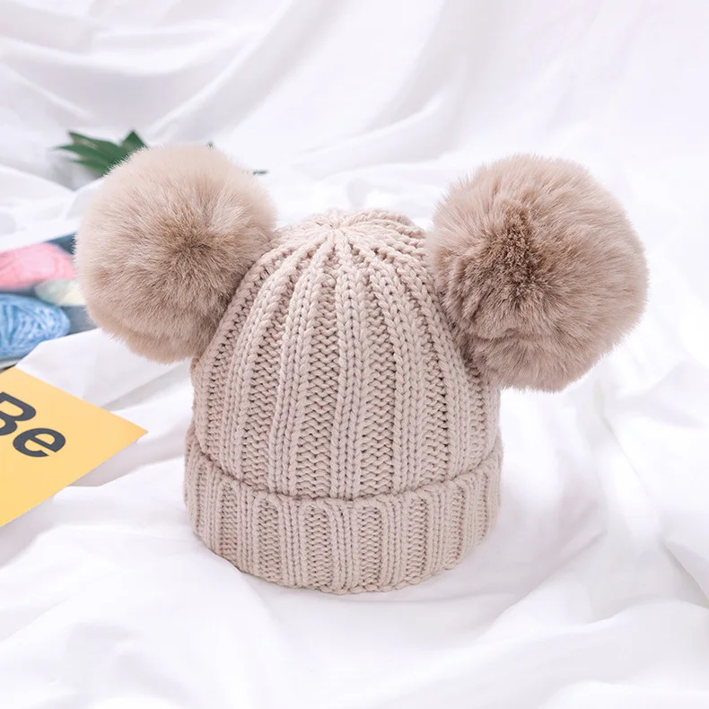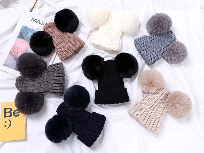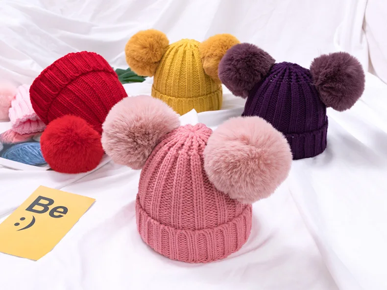 Новая милая детская шапка, осенне-зимние детские шапочки с помпонами, вязаные крючком хлопковые теплые шапки с помпонами для новорожденных мальчиков и девочек 3-18 месяцев