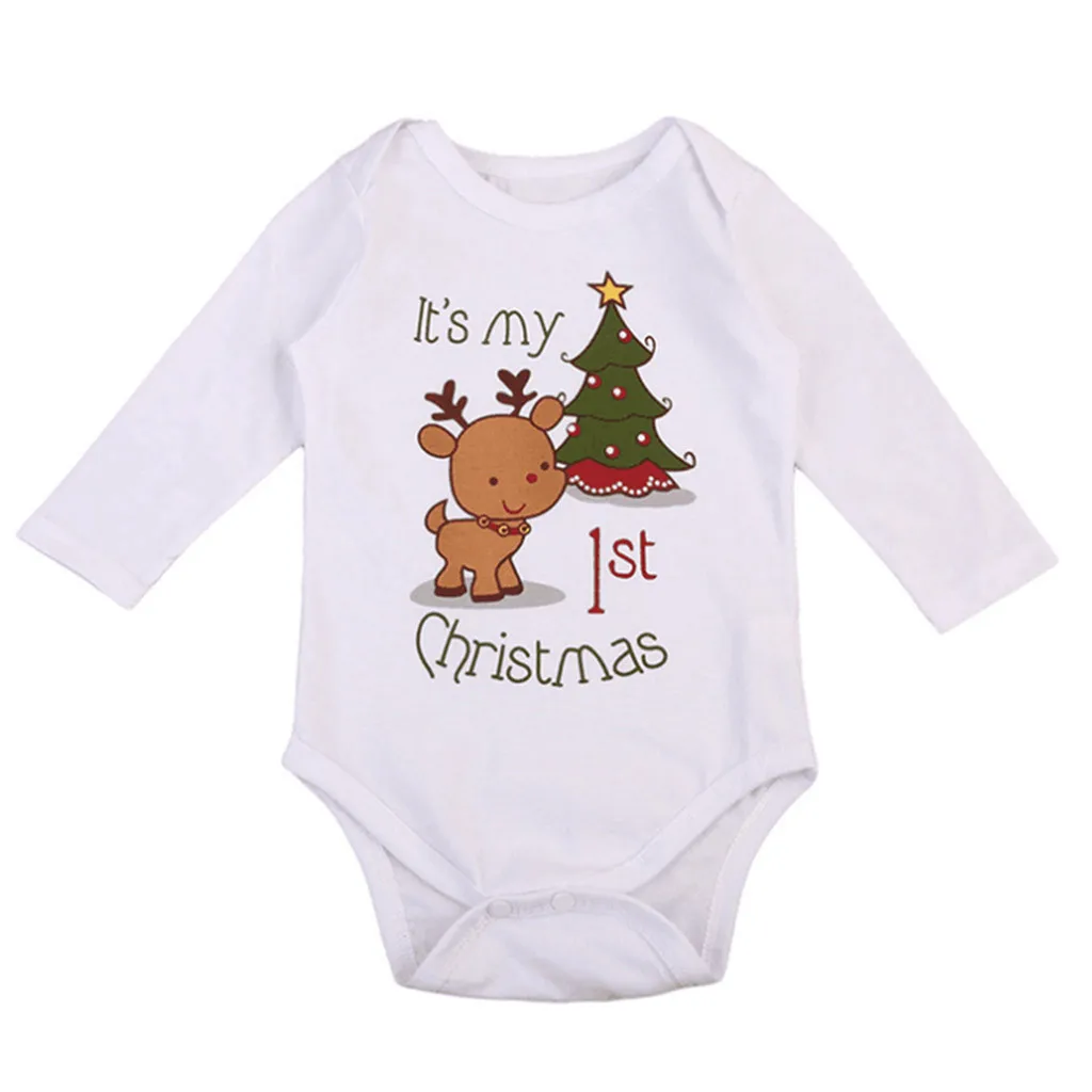 Комбинезон для новорожденных мальчиков и девочек с рисунком оленя и рождественской елки; осенняя одежда