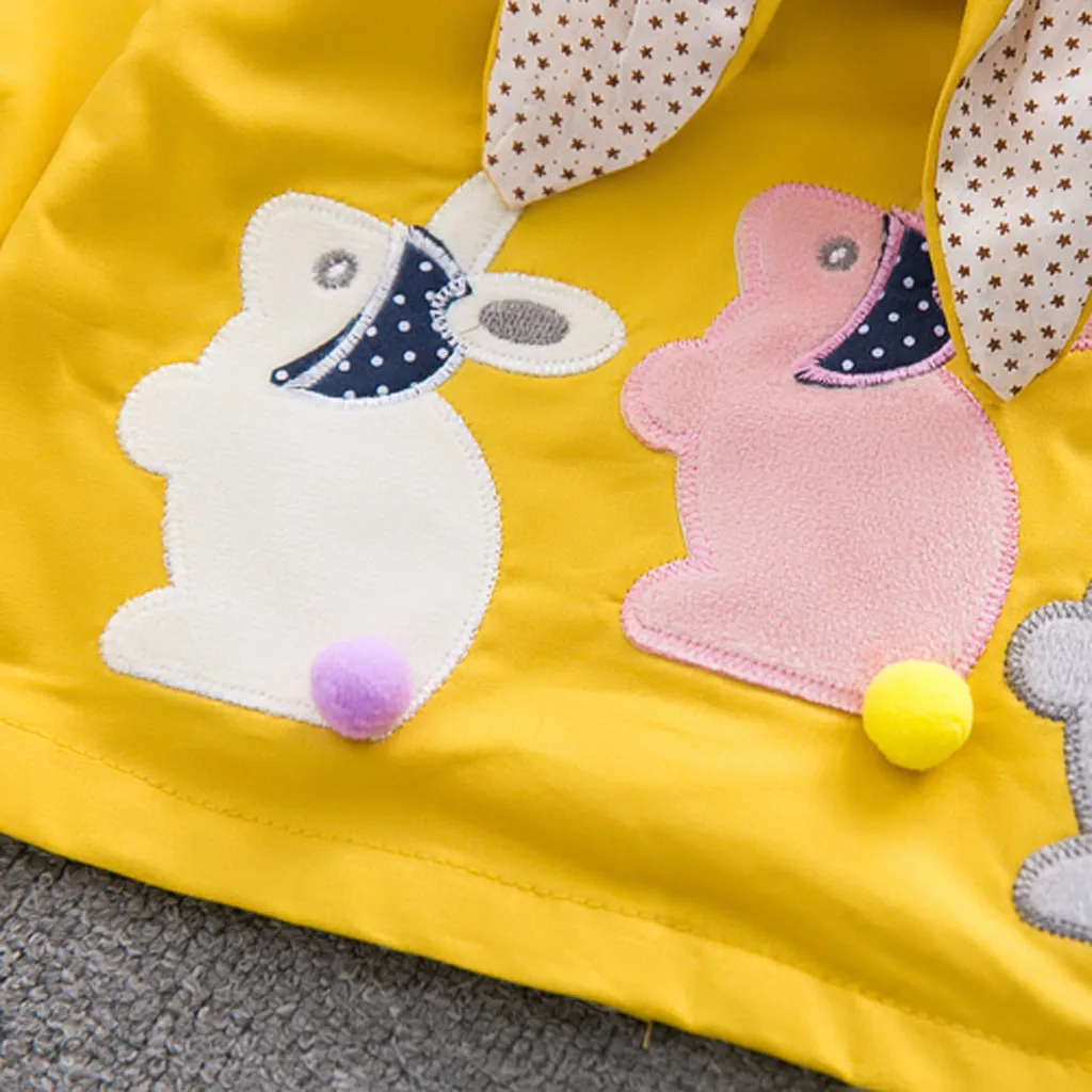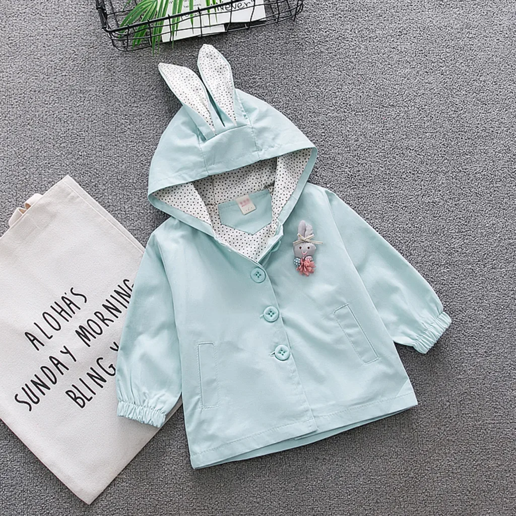 Ветрозащитное пальто с капюшоном и заячьими ушками для маленьких девочек; Верхняя одежда; Повседневная одежда