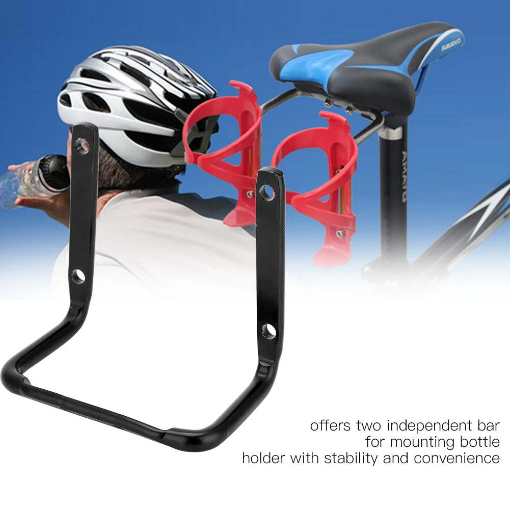 This bracket adopts good quality aluminium alloy, anti-rust, high strength, wear-resistant, durable. Comes with necessary fittings, only need to fix the bracket on the back of saddle, easy to install. This bracket offers two independent bar for mounting bottle holder with stability and convenience. Can hold two water bottles at the same time, good for long time cycling. Its used in the saddle, which is space-saving and wont bother your cycling.