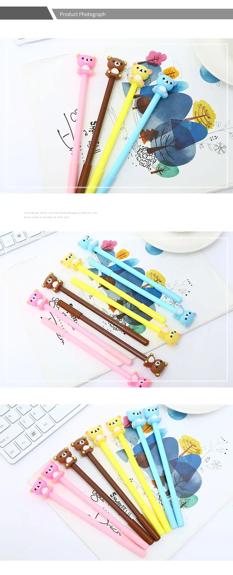 1, стиль: милая креативная гелевая ручка с милым мультяшным животным медведем пандой 2, материал: пластик, резина 3, Спецификация: вес: 12,7 г Длина: 18,5 см 4, особенность: Взрослый учитель медсестра студентка дети гладкое письмо ежедневное использование ручка 5, Функция: отделение для деловых подписей инструмент, школа, студенческий экзамен стационарный 6, на заказ: Да, логотип может быть настроен с MOQ, принимаем PS (фотошоп), AI (адоба иллюстратор), CD (CorelDraw) Формат