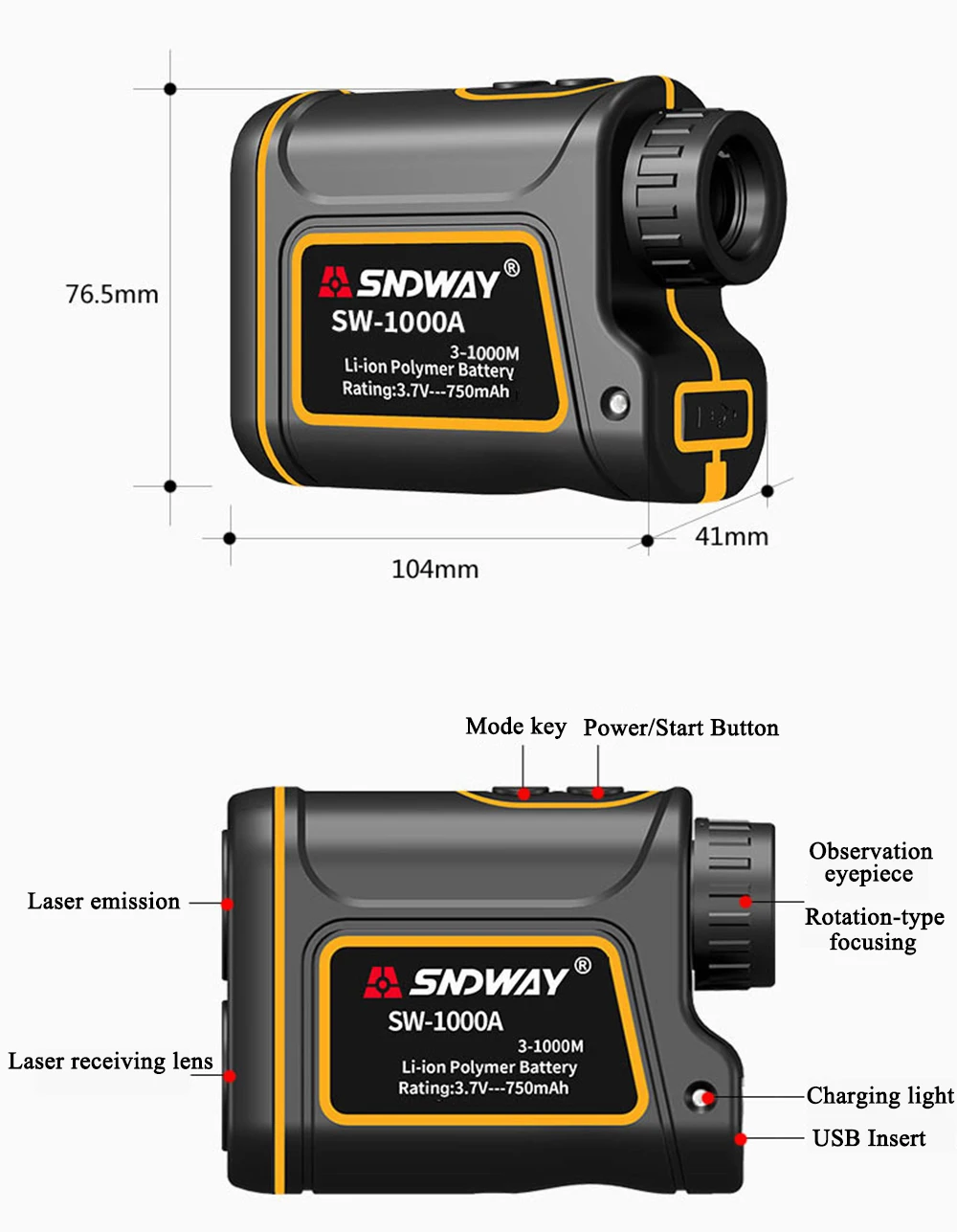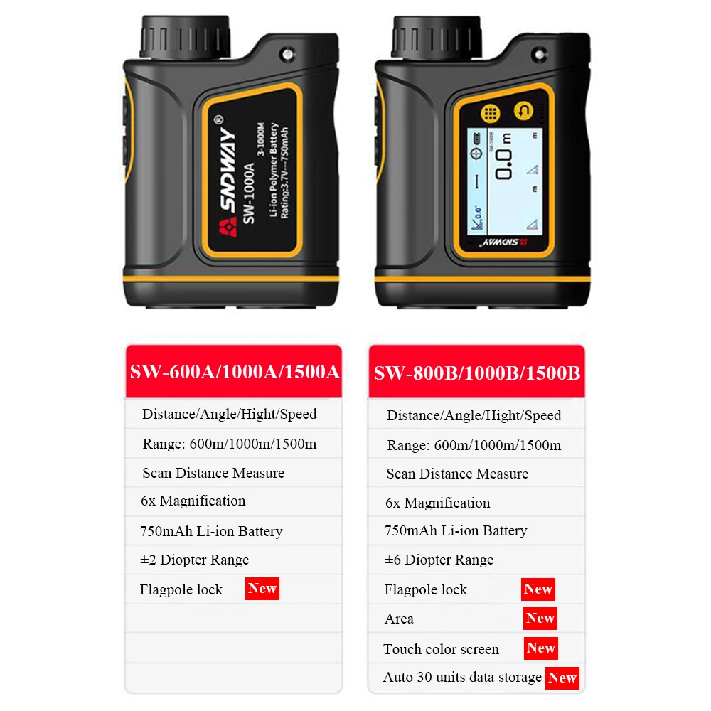 1 x лазерный дальномер1 х Портативный чехол1 х подвесная веревка1 х usb-кабель для зарядки1 x Руководство пользователяSW-M500 SW-M700 SW-M1000 лазерный дальномер