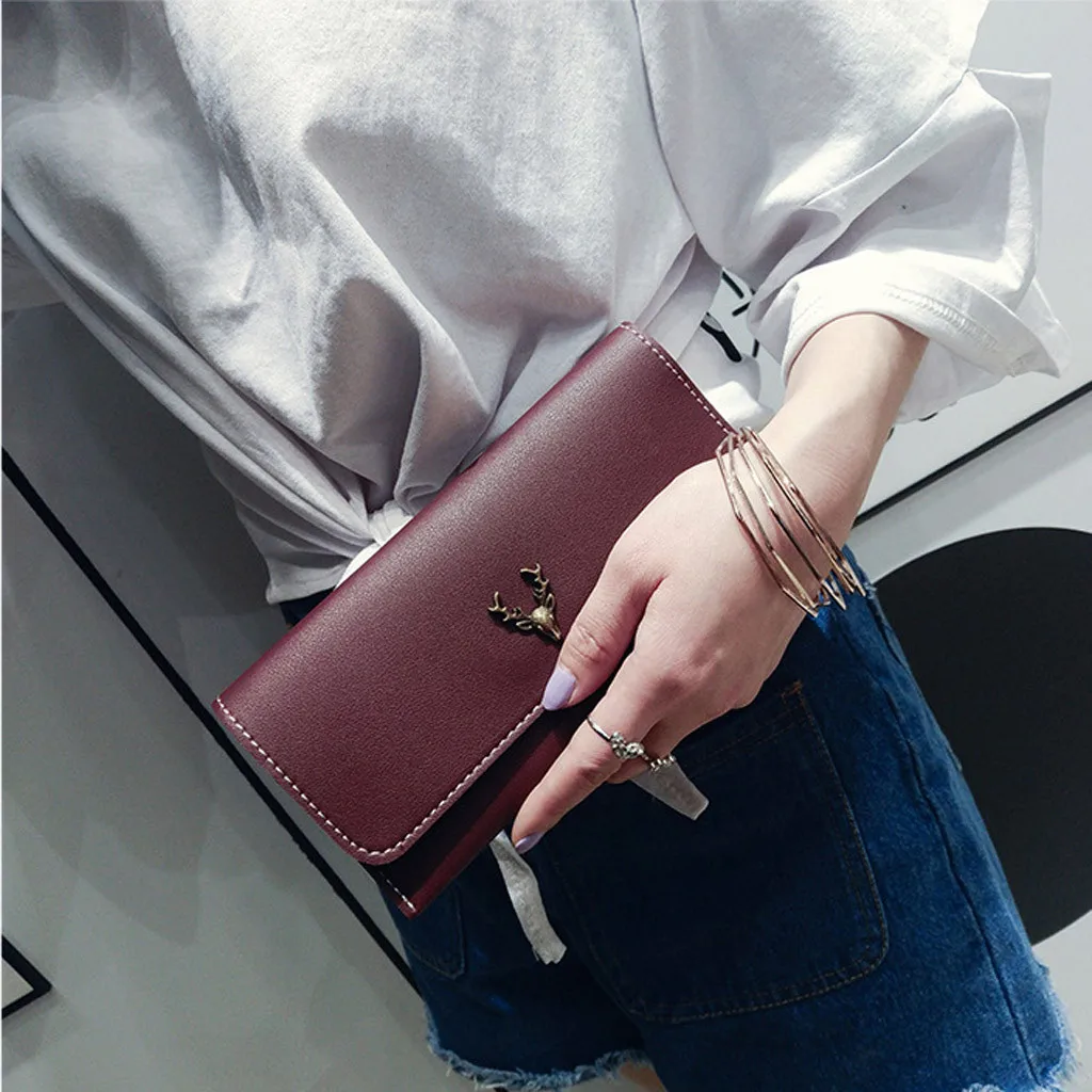Retro Girls Leather Long Paragraph Simple Solid Color Deer Purse Wallet