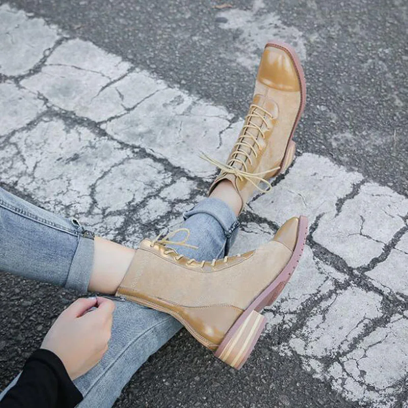 Новинка 2020 года; Ботинки Martin; Женские замшевые туфли; Сезон осень-зима; Повседневные ботинки на шнуровке; Цвет бежевый, черный; Botas Mujer; Короткие ботинки; ppm-21
