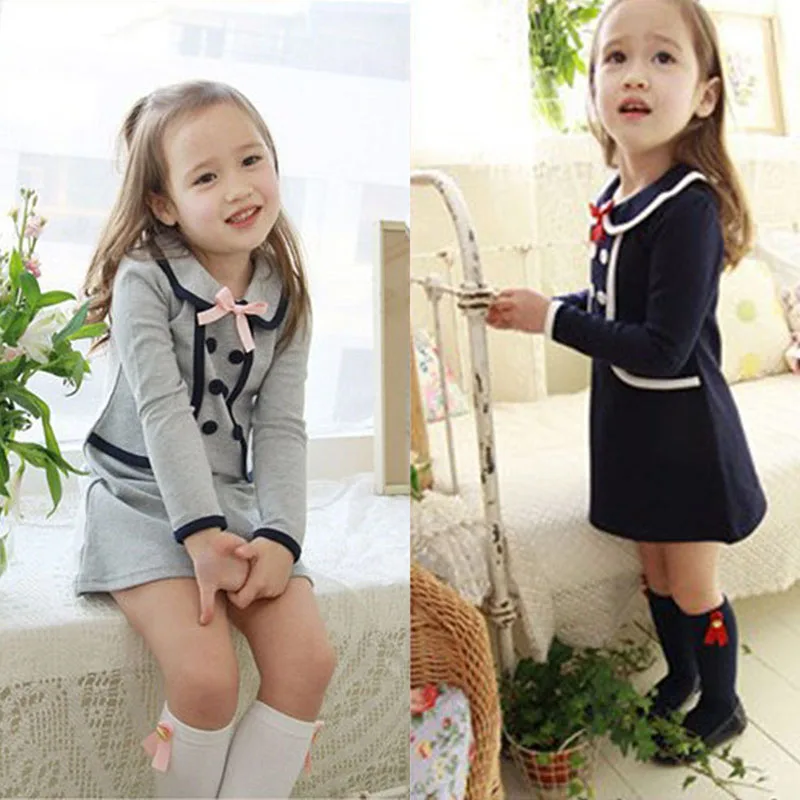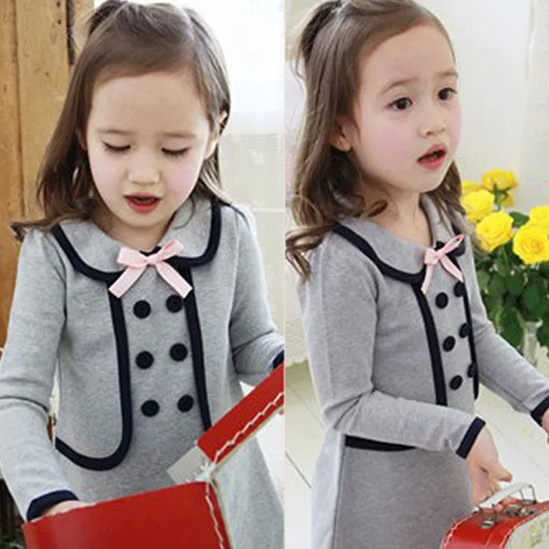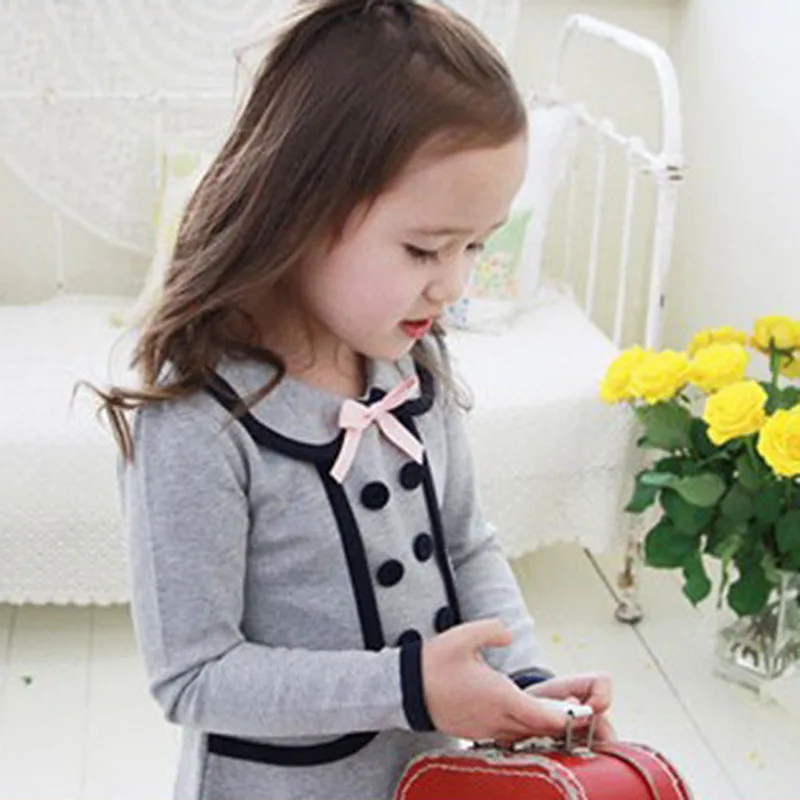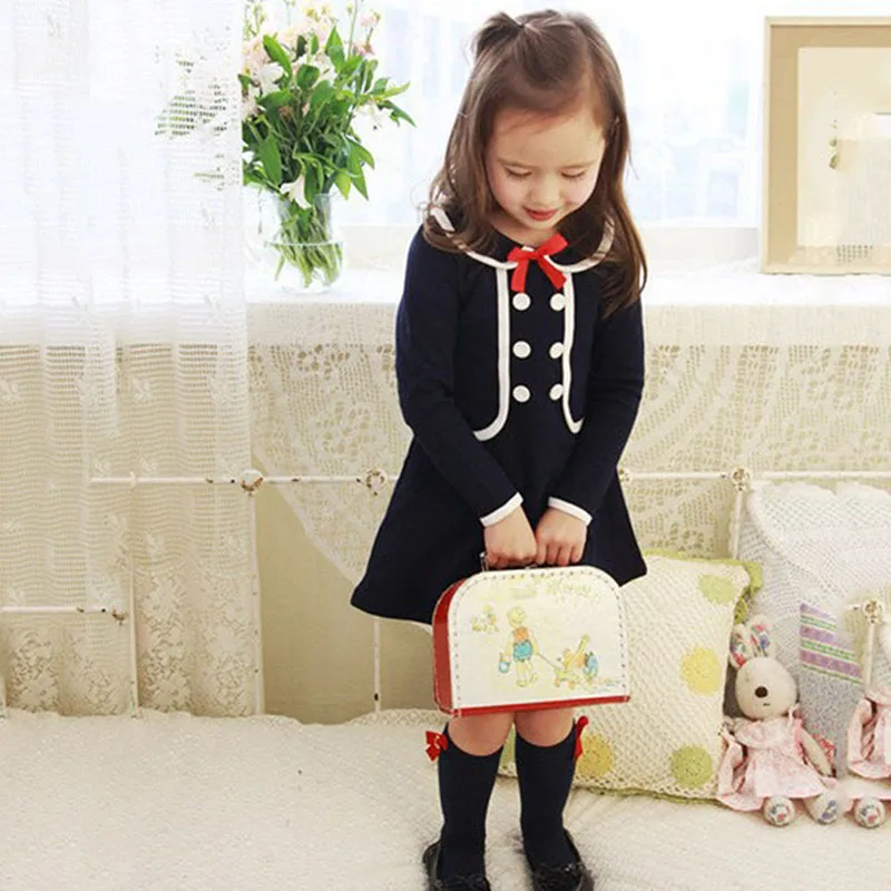Осенне-зимняя одежда для маленьких девочек платье из 2 предметов с длинными рукавами модное платье с бантом, детские платья Одежда для детей