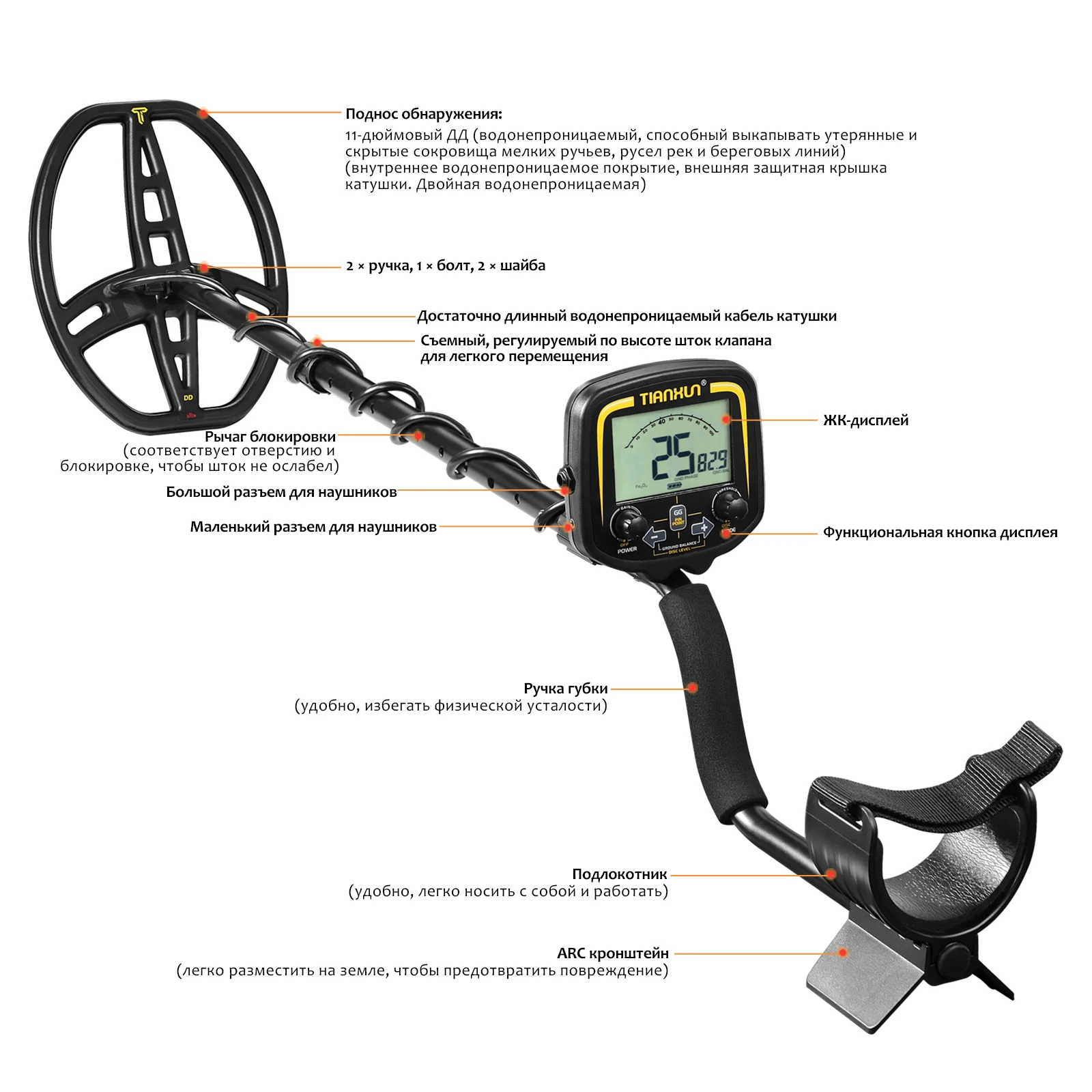 Получение информации:TX-850 разработан с высокой чувствительностью, чтобы найти мельчайшие золотые самородки, реликвию-охоту и охоту на катушек, поиск непокрытыхСокровище, которое может быть использовано во дворе, береговой линии, горах или поле издали, детекторМожет дать вам испытать волнение от поиска сокровища.Характеристика продукта1. Устранение-ссылка на удаляемый Металл означает, что детектор не излучает тон, и не загорается индикатор2. Дискриминирование-позволяет потребителю thw не принимать во внимание мусор и другие нежелаемые предметы3. Реликвия, железо, железо (бронза, старые банки, трубы, болты, гвозди)4. Pipionting-поиск точного местоположения зарытого объекта5. V.c. O-напряжение управления Osillator (шаг звука и громкость для увеличения мощности сигнала)6. Автоматический баланс ЗемлиTX-850 сперсификатионЦвет: черныйДлина стрейч: 42 - 52 дюймаБатарея: 1X9 В (6F22 перезаряжаемый аккумулятор входит в комплект)Рабочее напряжение: 9 ВОсновная чувствительность: Американская монета (12-15 дюймов)Глубина обнаружения: Макс: 1,5 м (алюминиевая доска 50x50x1,2 см)Поисковая катушка: 11 дюймов DD, водонепроницаемый, взаимозаменяемыйFrequncy: 19 кГц, кристаллический контрольРежимы индикации: ЖК-дисплей и звуковой индикаторВес упаковки: 1,9 кгВес нетто: 1,4 кгОсобенности: разъем для наушников, регулировка громкости и чувствительностиЗемной баланс дальность от феррита до соленой воды включительноСрок службы батареи: до 15 часовРабочая температура: (от-10 до + 50) градусов ЦельсияДиапазон рабочей влажности: от 0 до 90% без конденсацииPortsAudio JackПосылка включает в себя:1 X contalбыл корпус1 х верхний стержень1 X поисковая катушка и стержень1 х Винтовая гайка и болт с резьбой2 х Монтажный шайбыРуководство по эксплуатации на английском языке-1 шт.Примечание:Baterry не входит в комплект, потому что не допускается отправка в самолетУважаемый покупатель, если вам нужно российское руководство, пожалуйста, свяжитесь со мной, и мы вышлем Электронное руководство, чтобы помочь вам легко использовать detetcor.