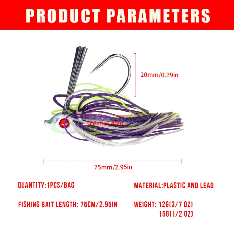 <Вес выбирается> 12 г (3/7 унций) / 15 г (1/2 унции). Рыболовные крючки Длина: 3,7 см/1.45in (приблизительно). Они отлично работали на озере smallmouth и больших басах