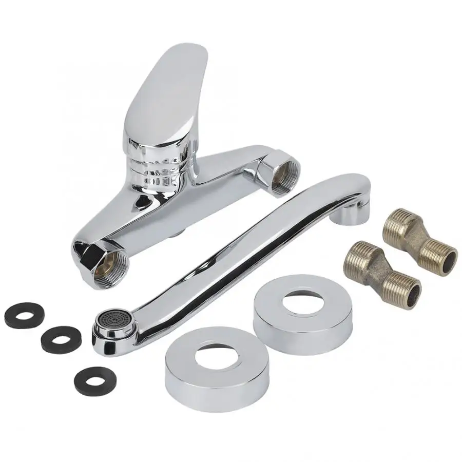 Wall Mounted Kitchen Sink Faucet Hot Cold Water Mixer Tap Double Holes