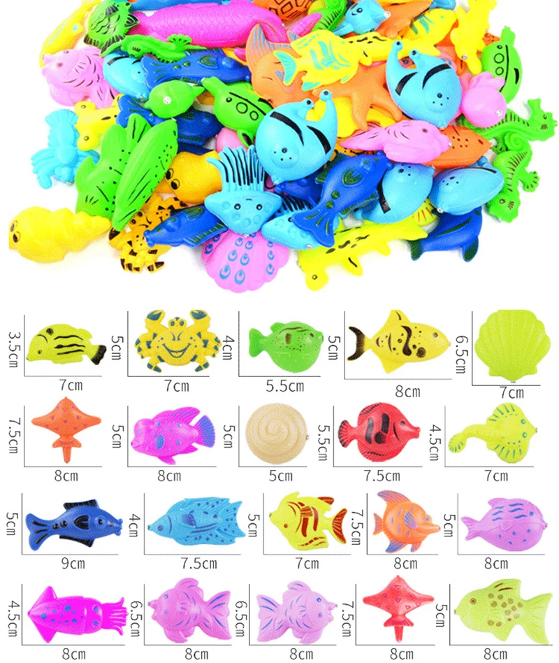 The price is for 1 piece Fishing Rod+1 net+10 Fishes. The fish color of each Batch is different. (the following color is just for reference.) Note: The fishing rod is the upgrade one.