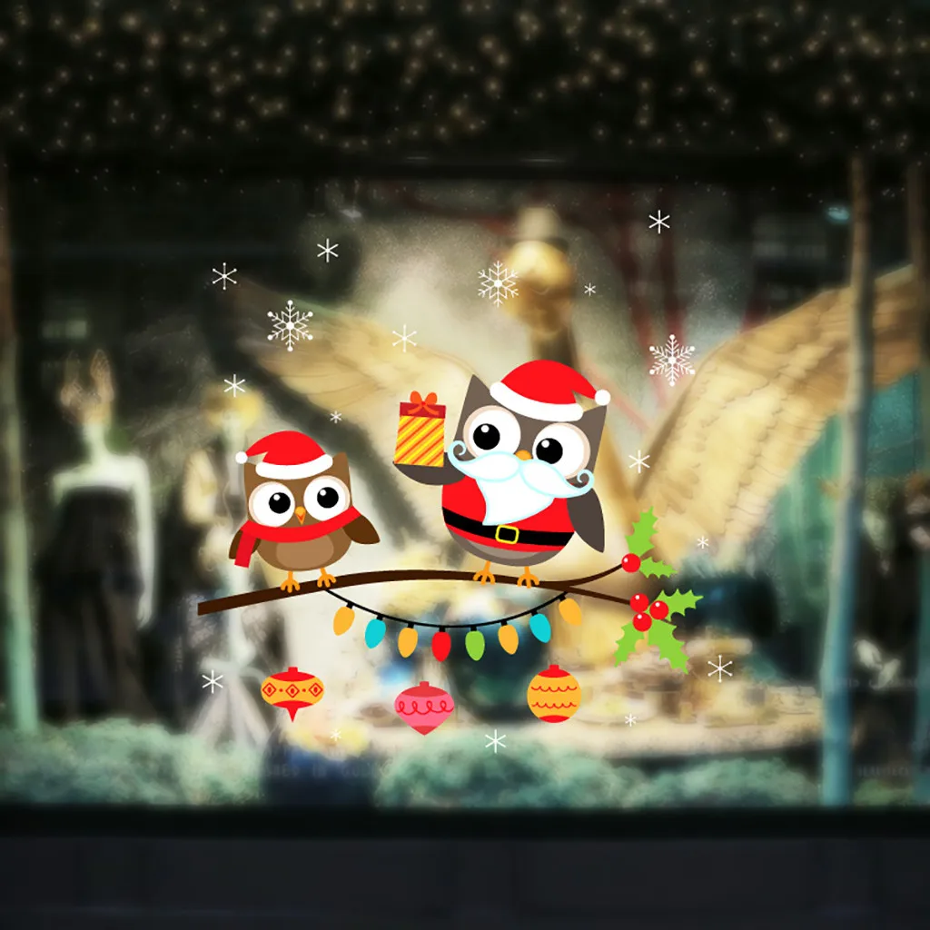 Рождественские настенные наклейки на окна Снежинка Санта Клаус дерево домашний Рождественский Декор