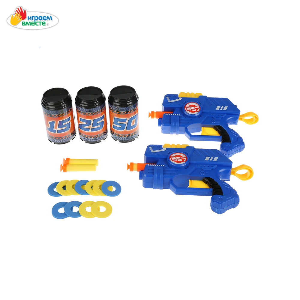 Яркие ультрасовременные бластеры с удобными рукоятками с дальностью стрельбы 10 метров приведут юного стрелка в восторг! Имеют 2 режима ведения огня: дисками и мягкими пулями. Тренируясь стрельбой по мишеням ребёнок станет самым метким стрелком. С таким набором маленький герой будет придумывать увлекательные спецзадания, защищать мир и стоять на страже порядка. Подойдёт для активных игр на воздухе и в помещении.