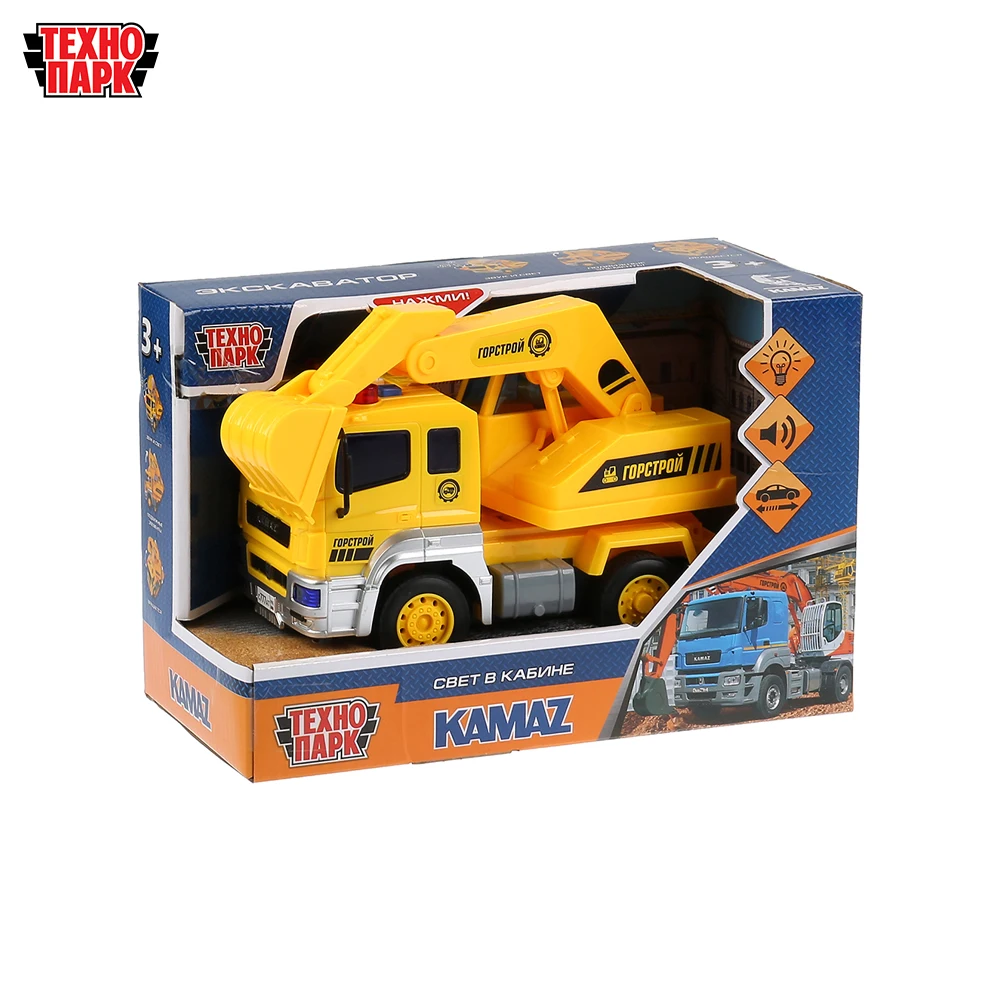 Ярко-жёлтый «КАМАЗ. Экскаватор» ТМ «ТЕХНОПАРК» - это оригинальная коллекционная модель, выполненная с учётом всех особенностей прототипа. Игра с инерционной машинкой ТМ «ТЕХНОПАРК» тренирует координацию движений, внимание, ловкость, знакомит ребёнка с видами транспорта.
