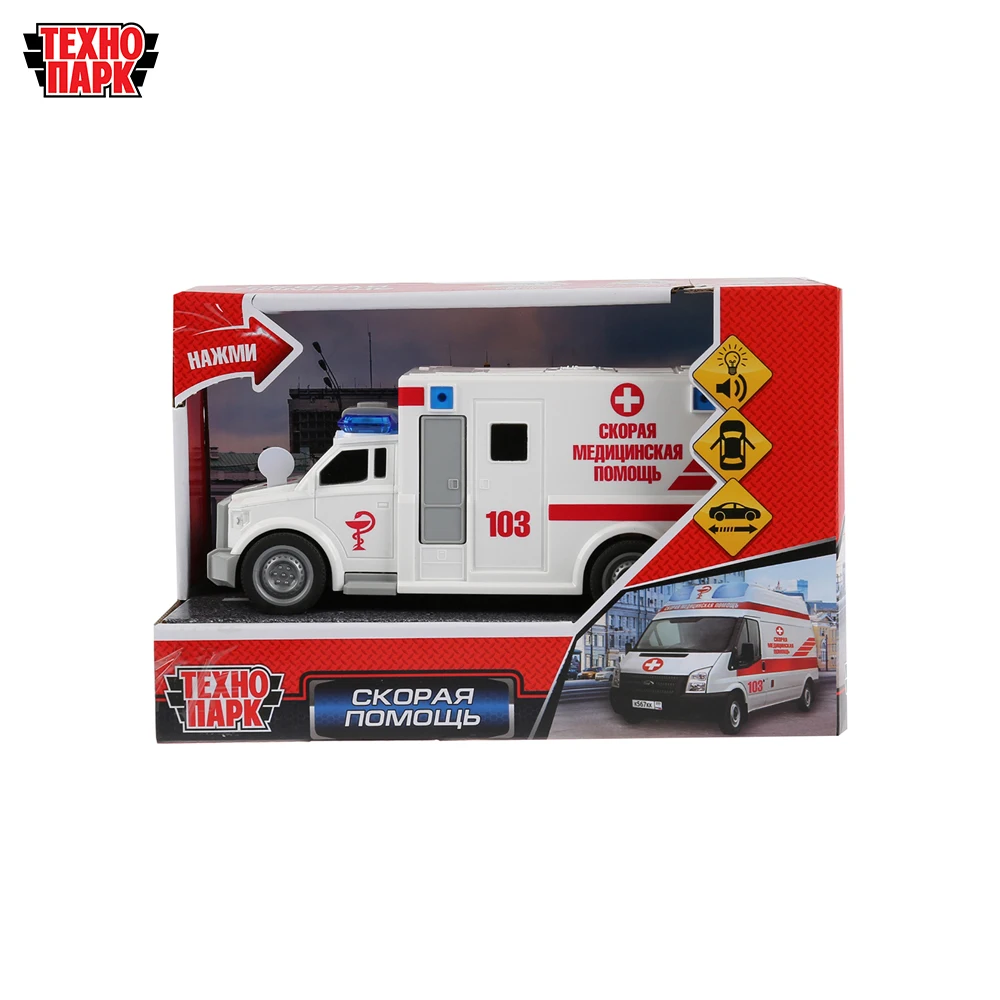 Функционал коллекционной металлической модели «Скорая помощь» ТМ «ТЕХНОПАРК» 4 в 1:
