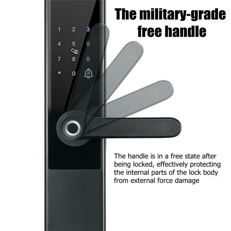 6. Свободная ручка, ручка находится в свободном состоянии после блокировки, эффективно защищает внутренние части корпуса замка от внешних повреждений. 7. 5A Просверленный пресс-экран, пылезащитный, водонепроницаемый, чувствительный датчик давления.