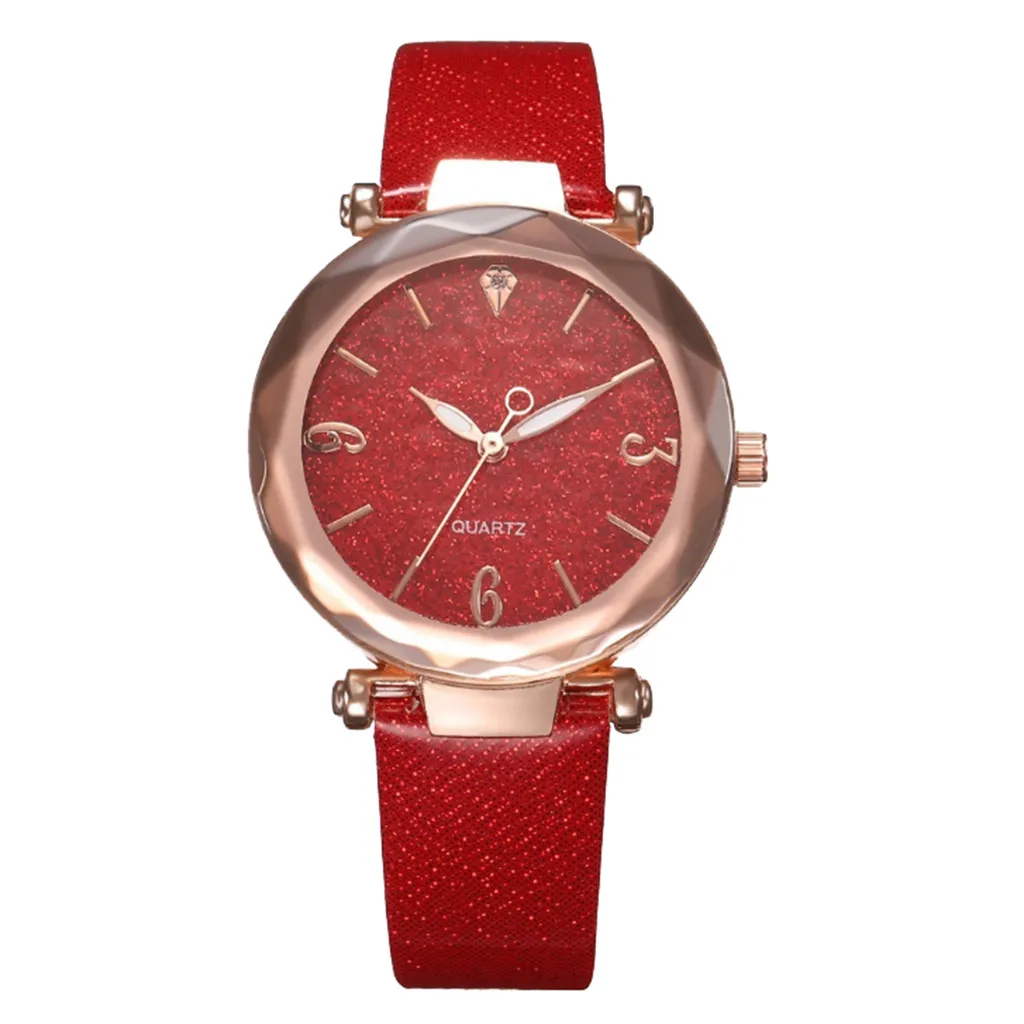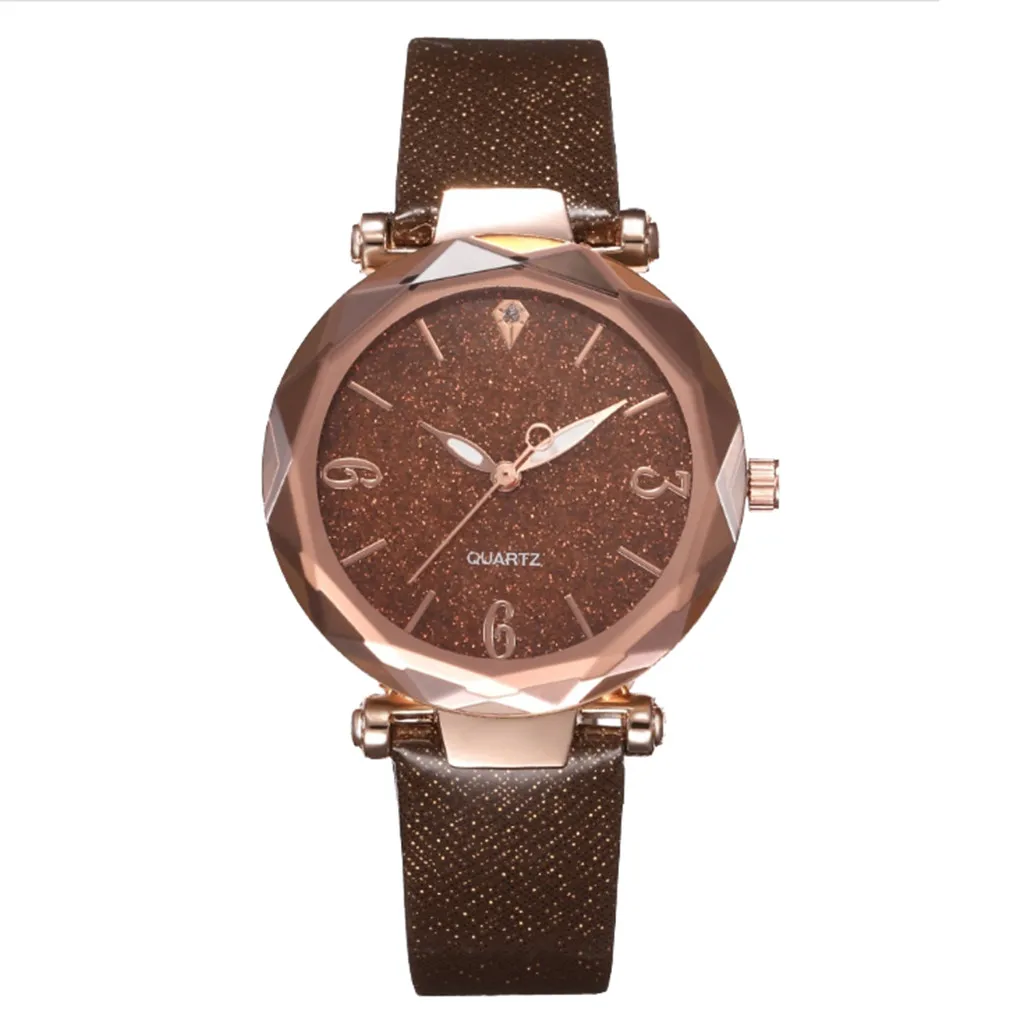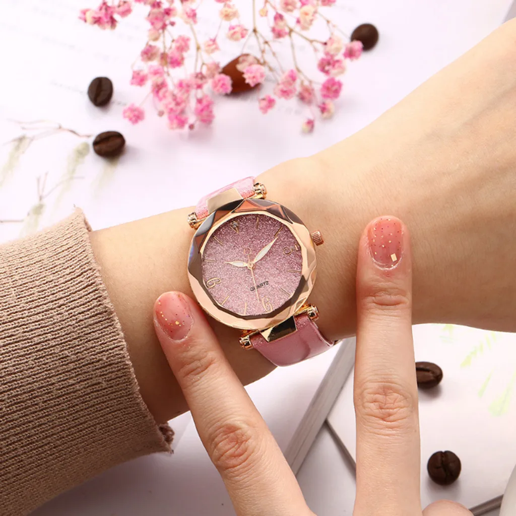Модные розовые женские часы, повседневные, розовое золото, звездное небо, чехол, кожа, Женские кварцевые наручные часы, Relogio Feminino reloj mujer