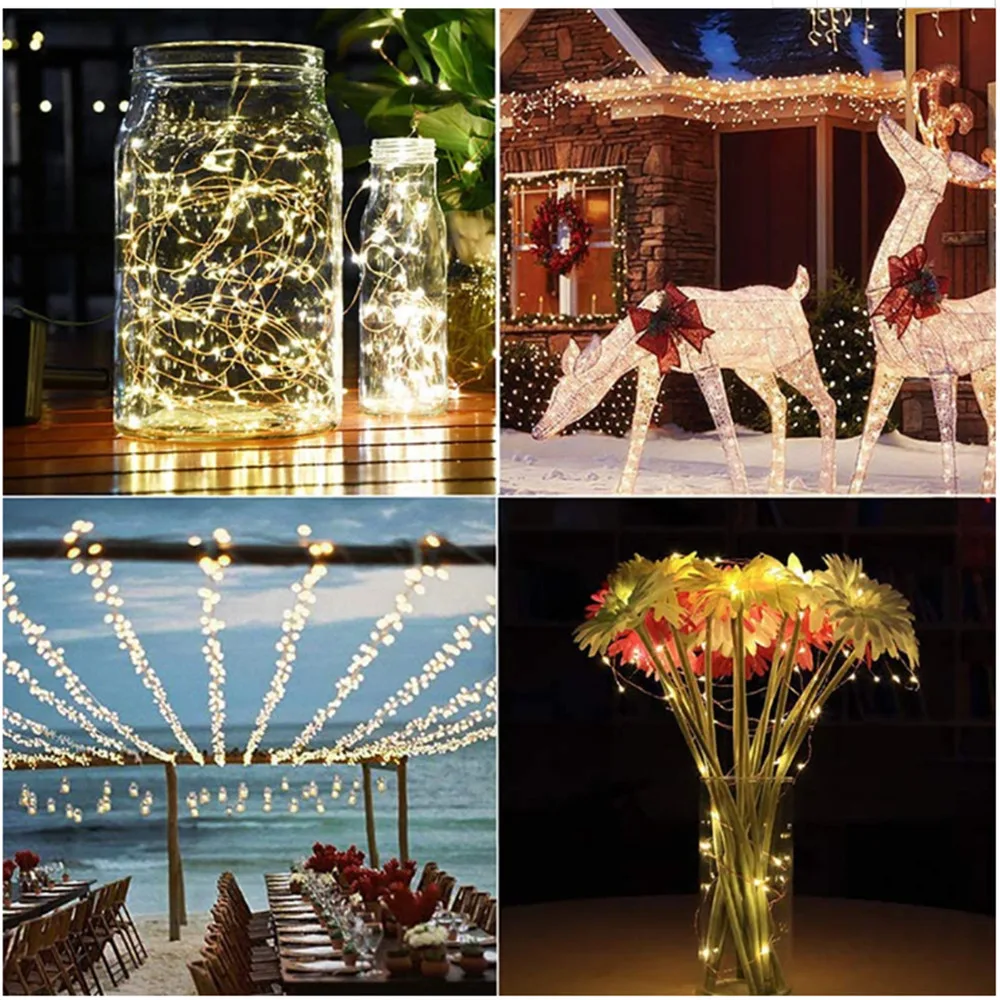 Светодиодный светильник на солнечной батарее 7-52 м, водонепроницаемая медная проволока для улицы, праздничный Сказочный светильник s для украшения рождественской вечеринки и свадьбы