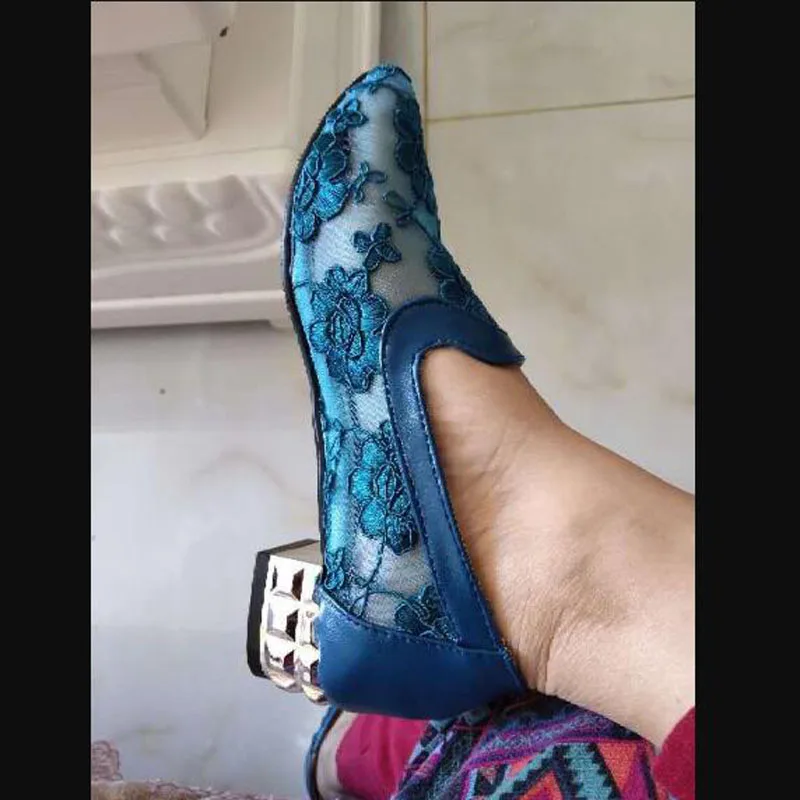 Женские однотонные туфли-лодочки; Женская обувь с острым носком; Лоферы без застежки на платформе; Цвет синий, черный; Обувь с перфорацией; Zapatos De Mujer; T11-66; Размеры 35-41