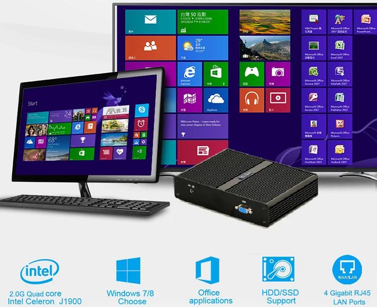 Четырехъядерный процессор Intel Celeron J1900 4 RJ45 Gigabit Lan NUC Tiny TV box Тихий Мини безвентиляторный встроенный Настольный ПК J1800 22nm Linux wind7