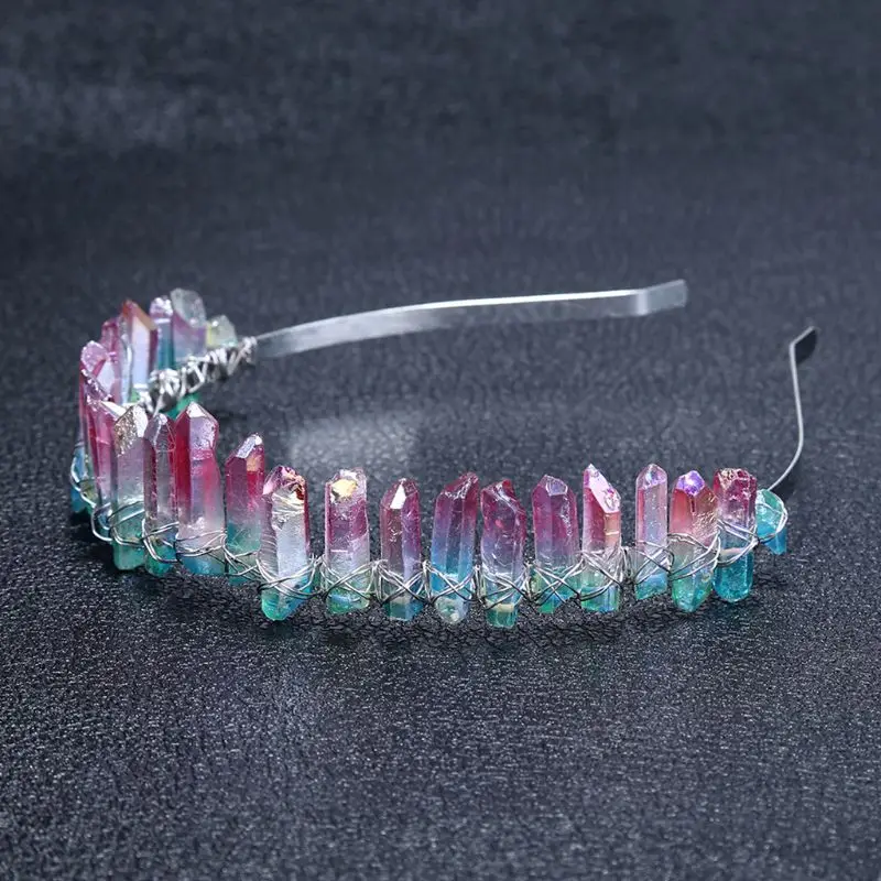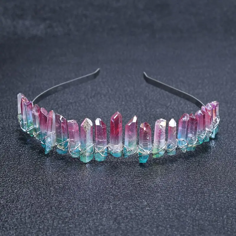 Градиентное зеленое и розовое искусственное украшение из необработанных кристаллов, обмотка проволокой с оголовьем из сплава, твердая и прочная.