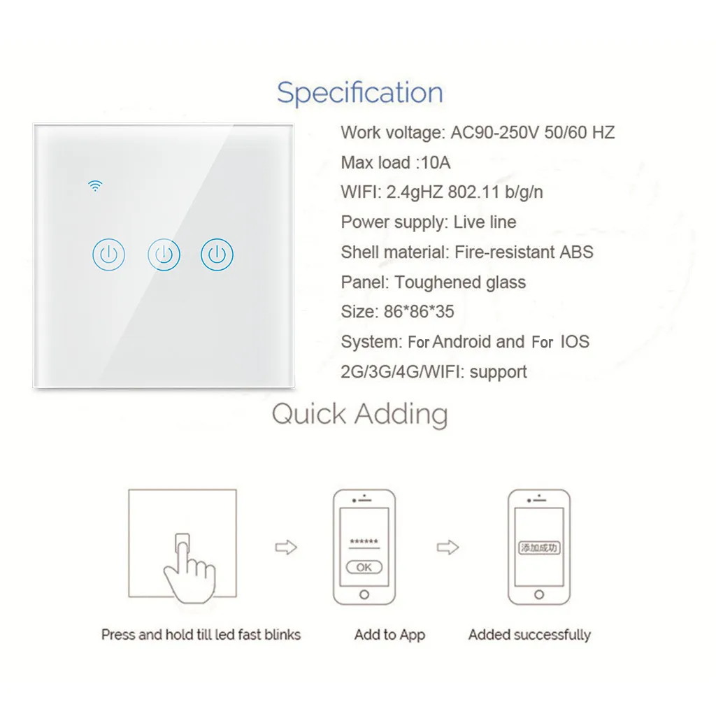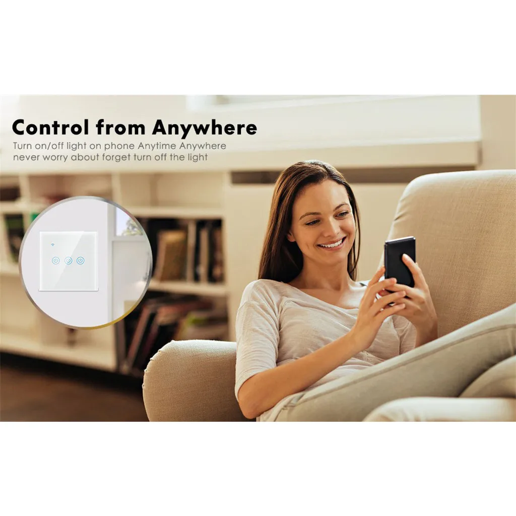 Интеллектуальная беспроводная (Wi-Fi) Настенный светильник с тремя кнопками для Alexa для Google Home Беспроводной дистанционного Управление со стороны Мобильное приложение в любом месте Сроки Функция гнездо не требуется