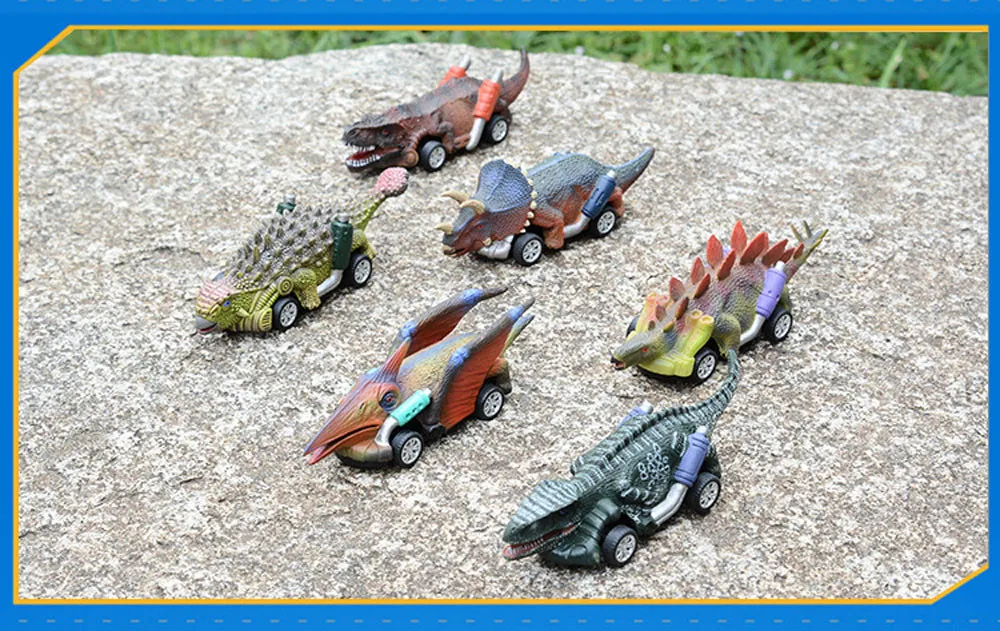 Креативный динозавр CarsAll 6 машин в форме динозавра (Трицератопс, велоцираптор, тираннозавр Рекс, стегозавр, птеросаурия, Анкилозавр), что является большим притяжением Дети. Привлекательная задняя сторона Автомобиль тянет назад Автомобили с большими колесами, просто потяните его обратно, тогда он будет идти Автоматически, что позволяет детям играть в Вечерние игры.Посылка: