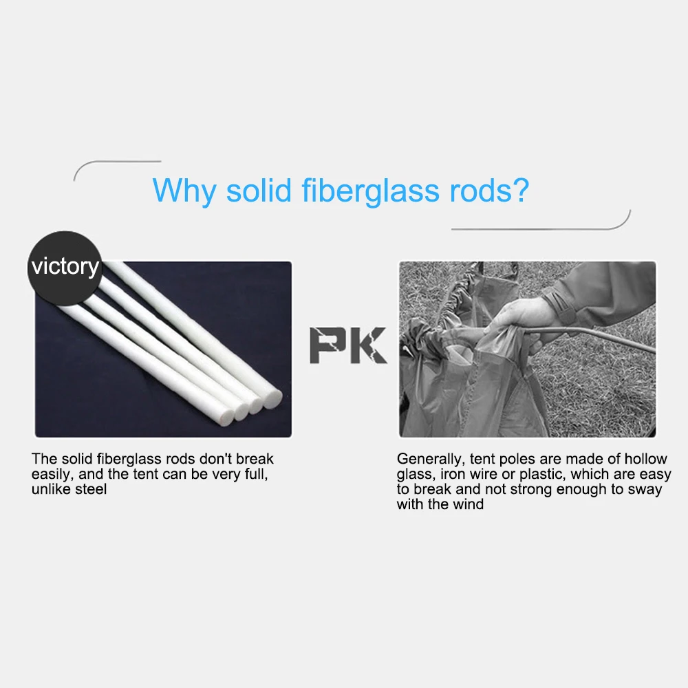 Прочная ткань 190TUV для дождливой погоды и водонепроницаемый 210D Оксфордский тканевый пол с полностью проклеенными швами. 6 мм Стекловолоконные полюсы наружной палатки прочные и практичные также хорошо подходят в ветреную погоду.