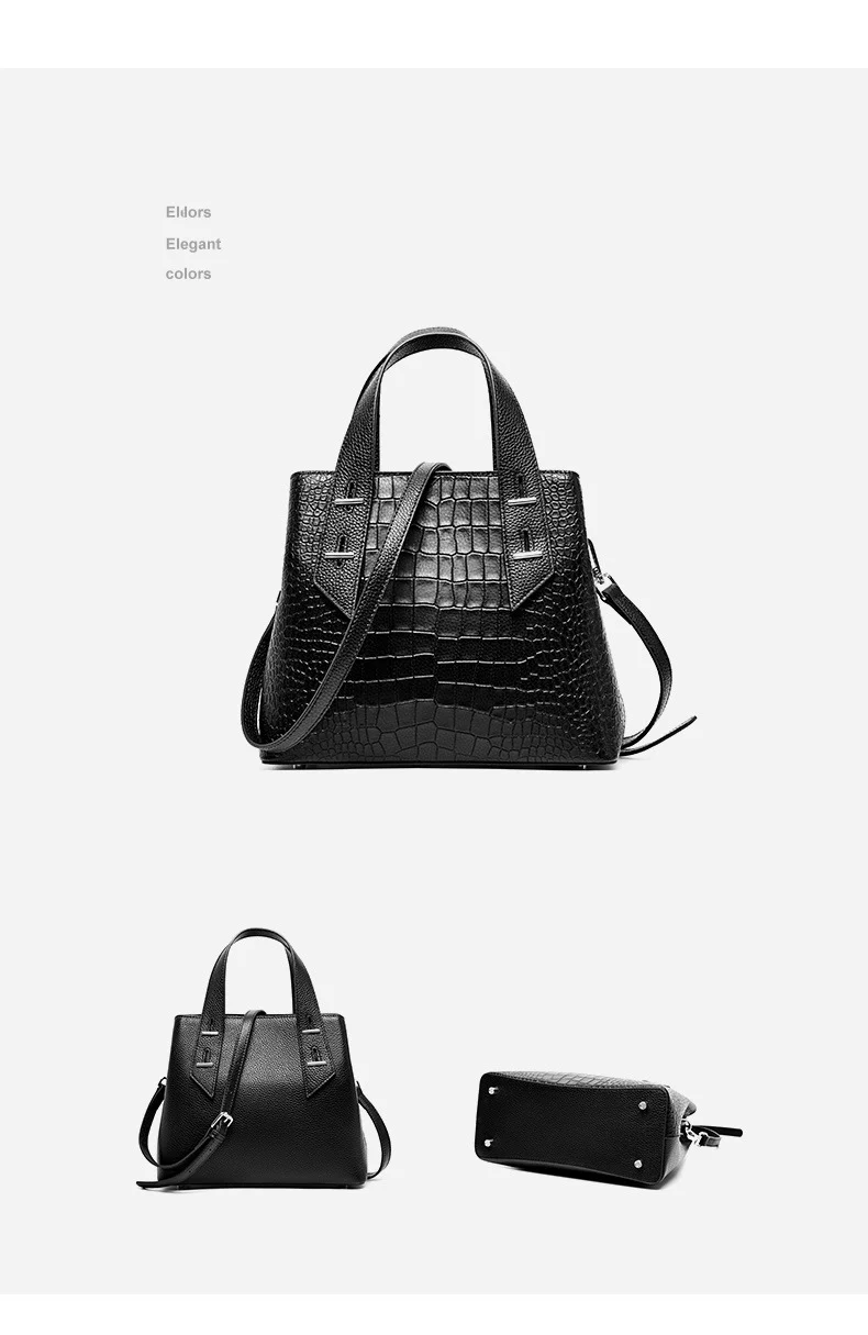 Женская сумка из 100% натуральной кожи, черная Повседневная сумка через плечо, 2019