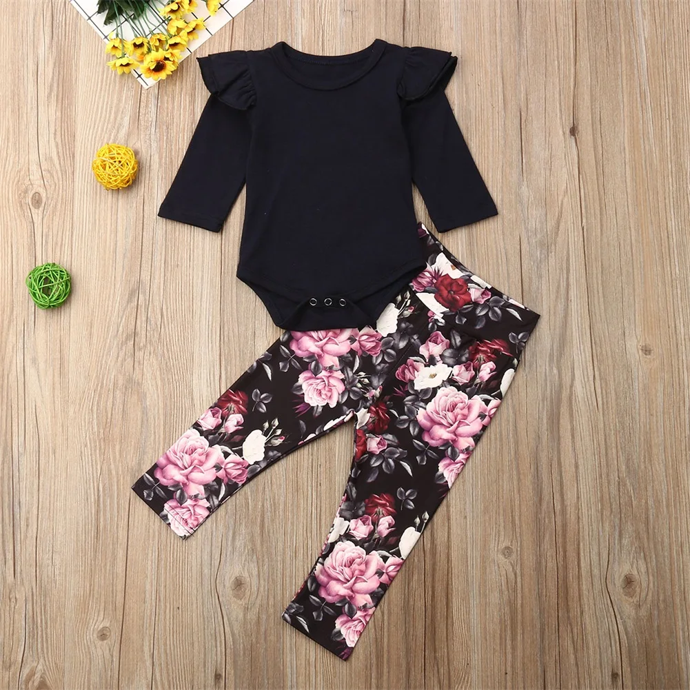 1 однотонный комбинезон и 1 штаны с цветочным принтом