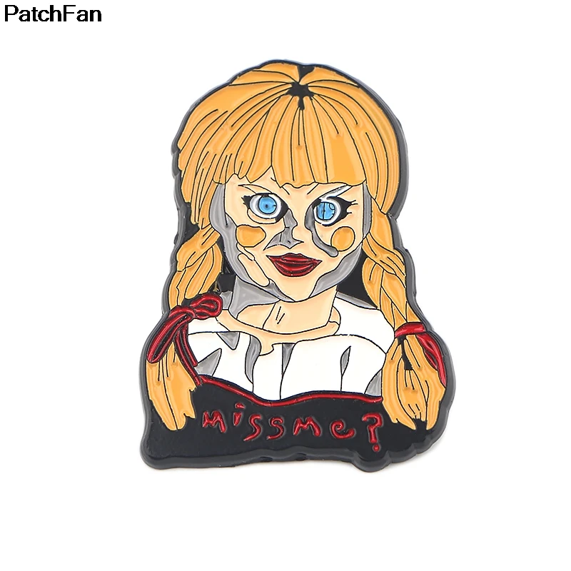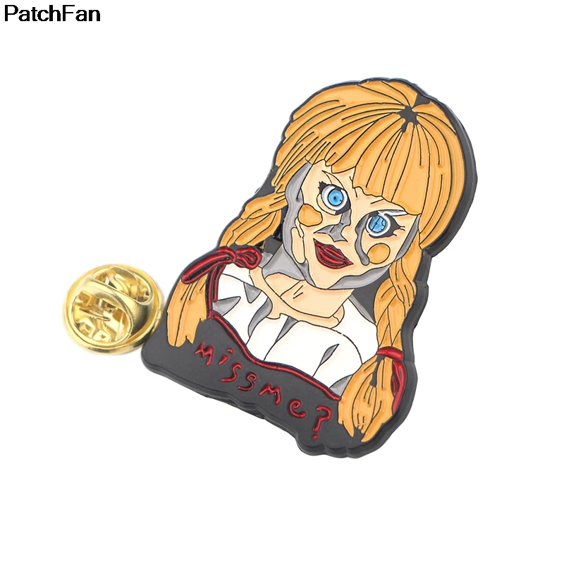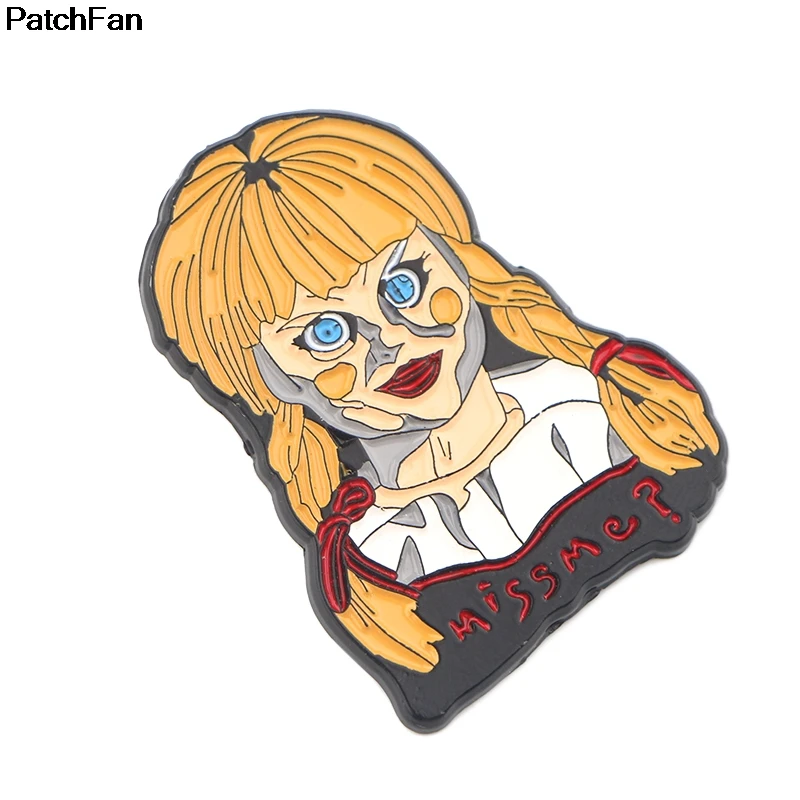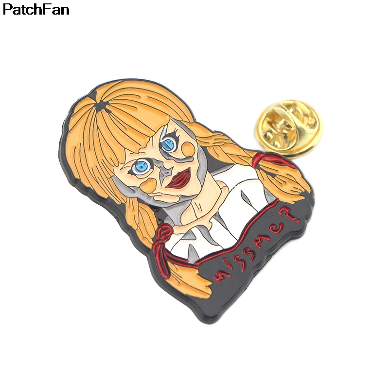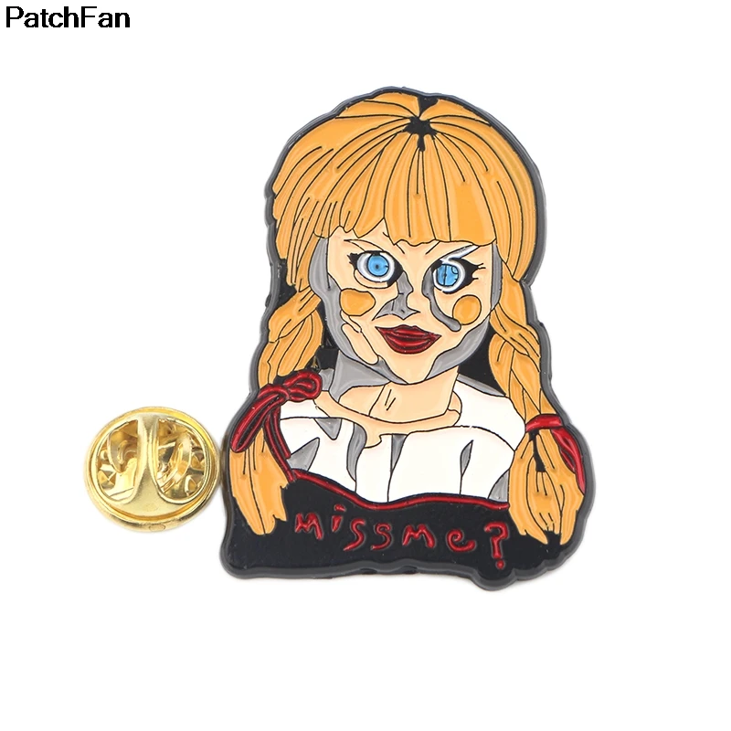 [Наименование]:Patchfan Annabelle террор призрак ужас фильм цинк галстук булавки броши для рюкзака, одежды для мужчин женщин шляпа значок медаль A2562