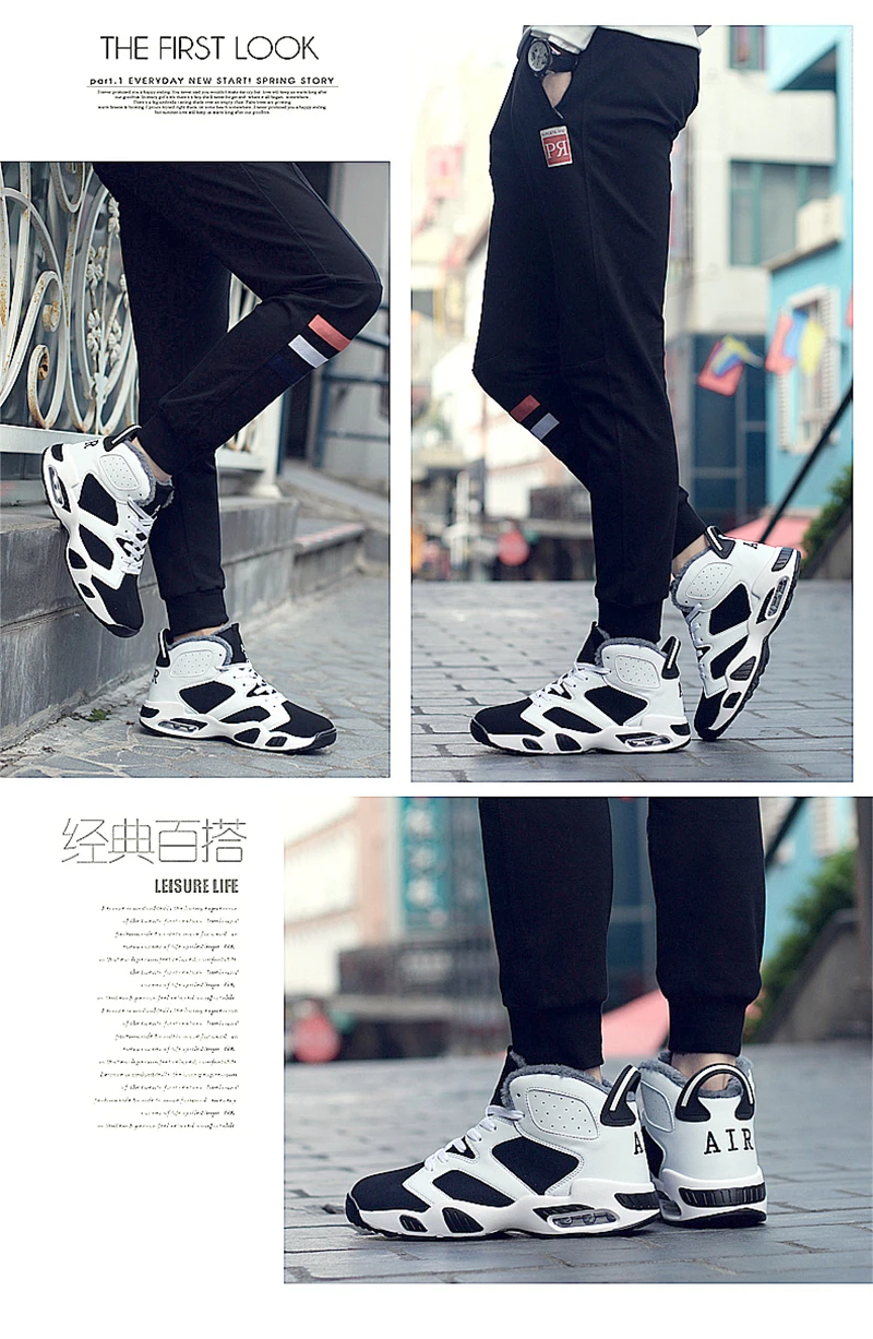 Мужские и женские зимние баскетбольные кроссовки с толстым мехом и высоким берцем, Баскетбольная обувь, амортизирующая уличная спортивная обувь, армейские ботинки, черные и белые 2019