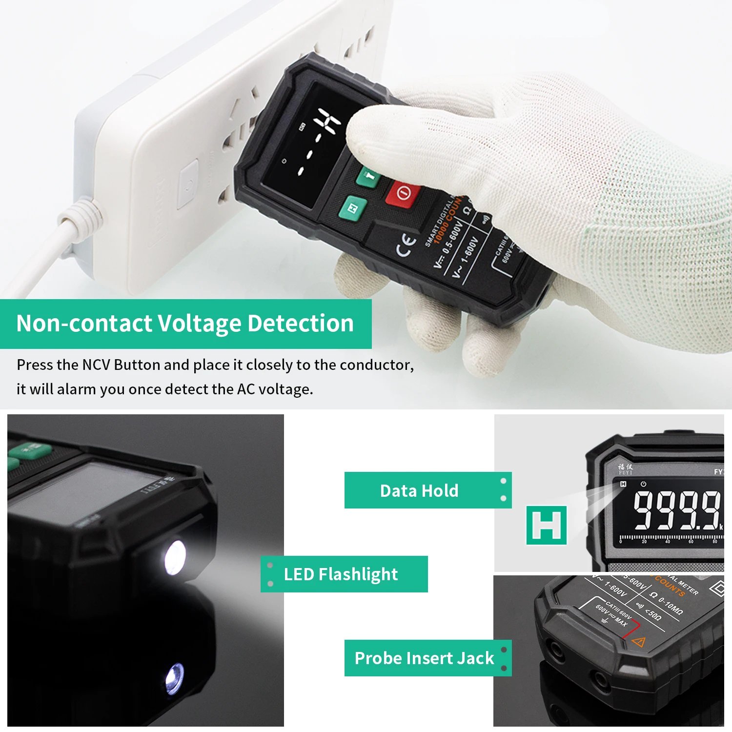 NCV тест: с функцией NCV (Бесконтактное Обнаружение напряжения) мультиметр автоматически определит высокое и низкое напряжение переменного тока и сделает другой звуковой сигнал, чтобы напомнить вам.