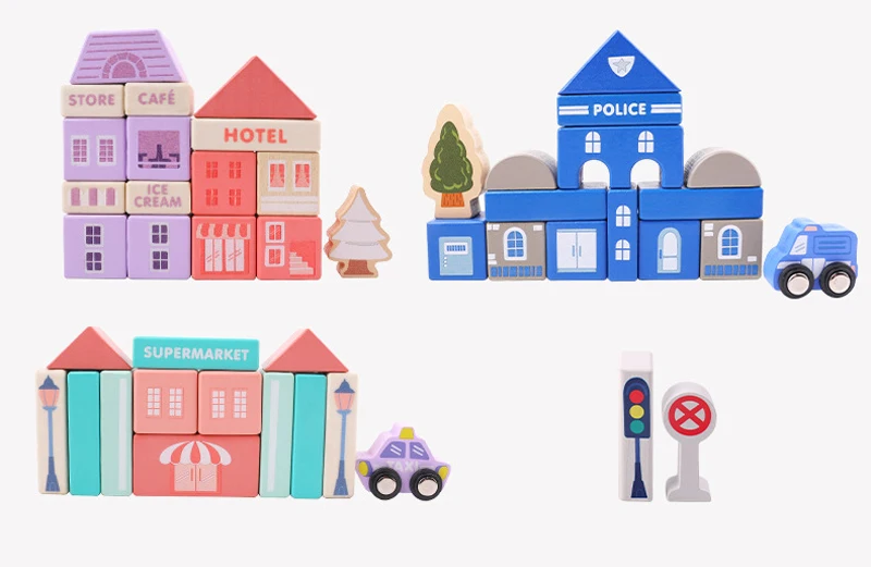 . Комбинируйте строительные блоки с городскими сценами, и ваш ребенок сможет узнавать об основных строительных и транспортных знаках, используя строительные блоки