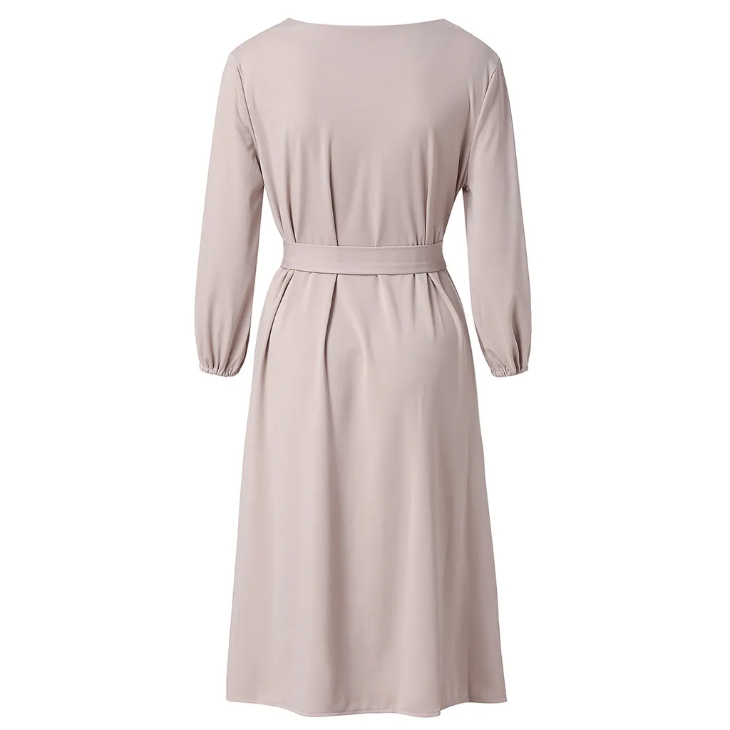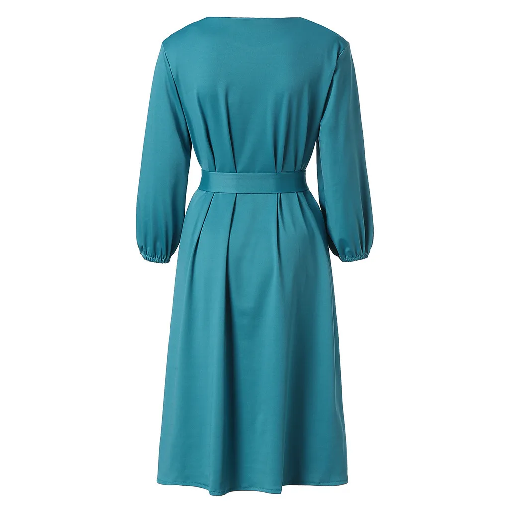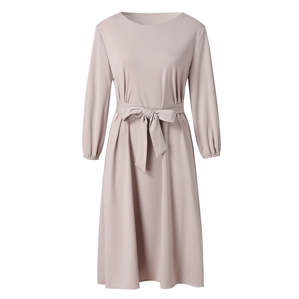 Женское модное платье с длинным рукавом и глубоким круглым вырезом