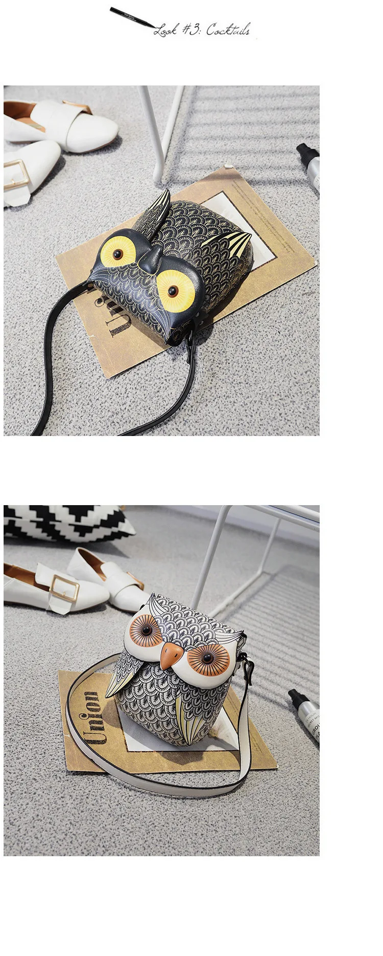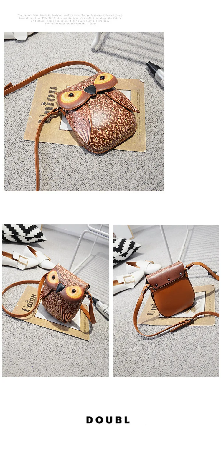 Мини-женская сумка через плечо, Мультяшные кожаные сумки, Сова, пакет, креативный Pu кошелек, сумка для девочек, милые сумки через плечо с животными, QF