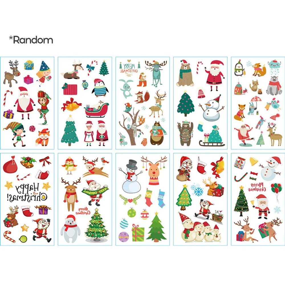 Лист наклейки имеет милые узоры Санта-Клауса, оленя, рождественской елки и т. д. он используется на ваших голой части тела, чтобы взять в качестве украшения, очень подходит для вечерние Рождества.