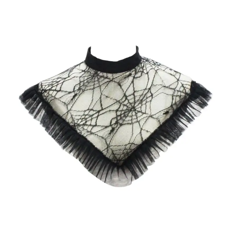 Классический черный цвет, стиль паутины, изящный сетчатый кружевной дизайн с оборками.