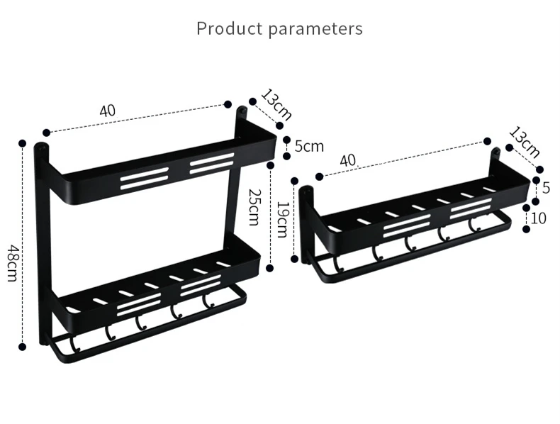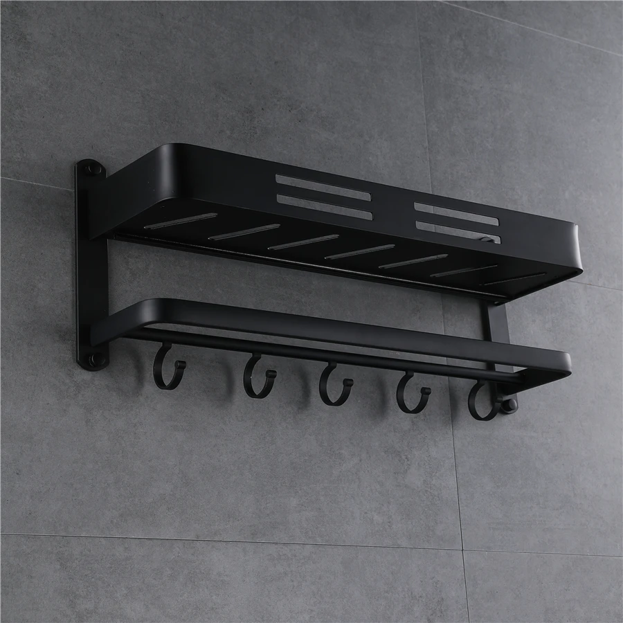 Настенная алюминиевая полка для ванной комнаты, полка для душа, стойка для ванной с перекладиной и крючком для полотенец полочки для шампуня, Кухонное хранение