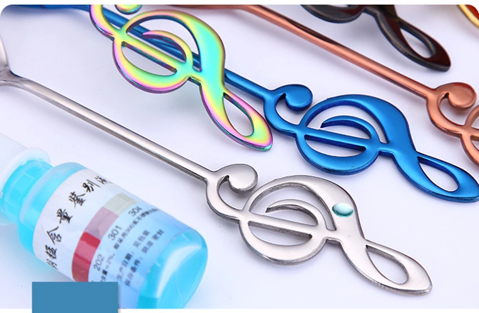 Это музыкальная кофейная ложка, мультяшная десертная ложка Цвет: как показано на рисунке Размеры: 15,5x2,8 см Материал: нержавеющая сталь Применимая сцена: бар, кофейня, гостиная
