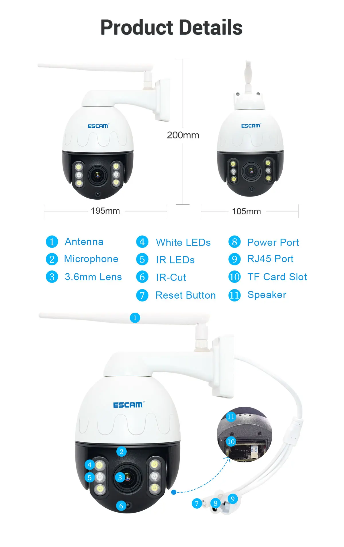 Камера * 1,Адаптер питания * 1,Водонепроницаемая шапка * 1,Винтовая сумка * 1, Инструкция * 1, антенна * 1