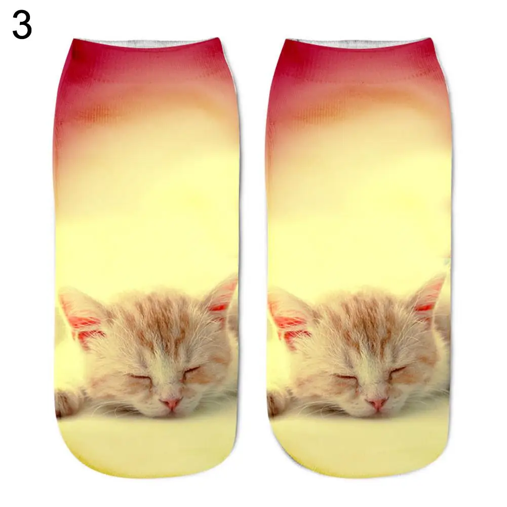 Особенности: мягкие, впитывающие влагу, дышащие, милые, креативные, с 3D-принтом кота, с героями мультфильмов, носки до щиколотки