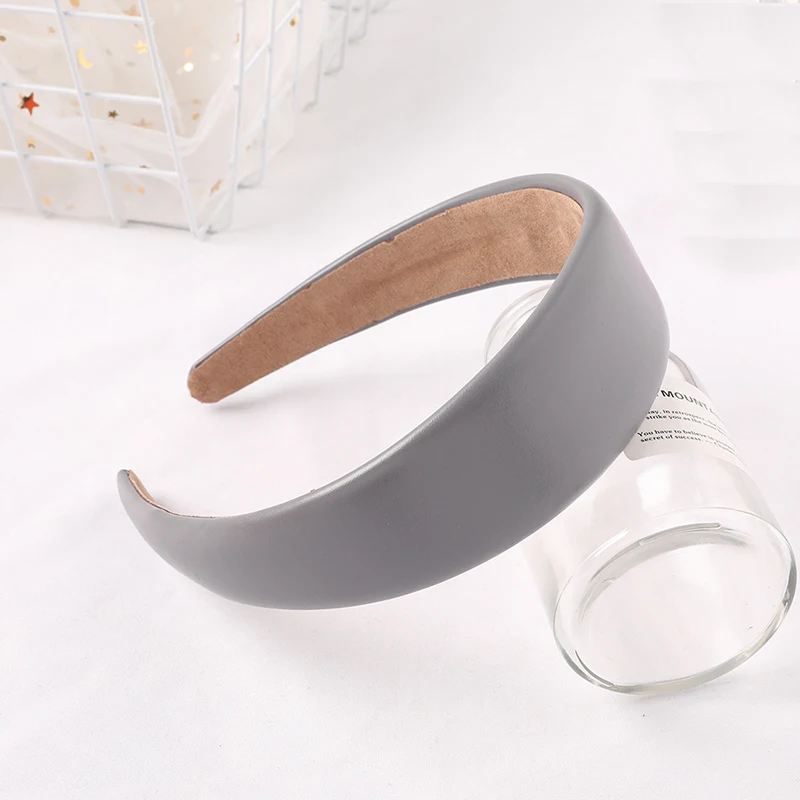 Простой стиль 4 см ширина ПУ кожа головная повязка модный однотонный пластиковый обруч для волос