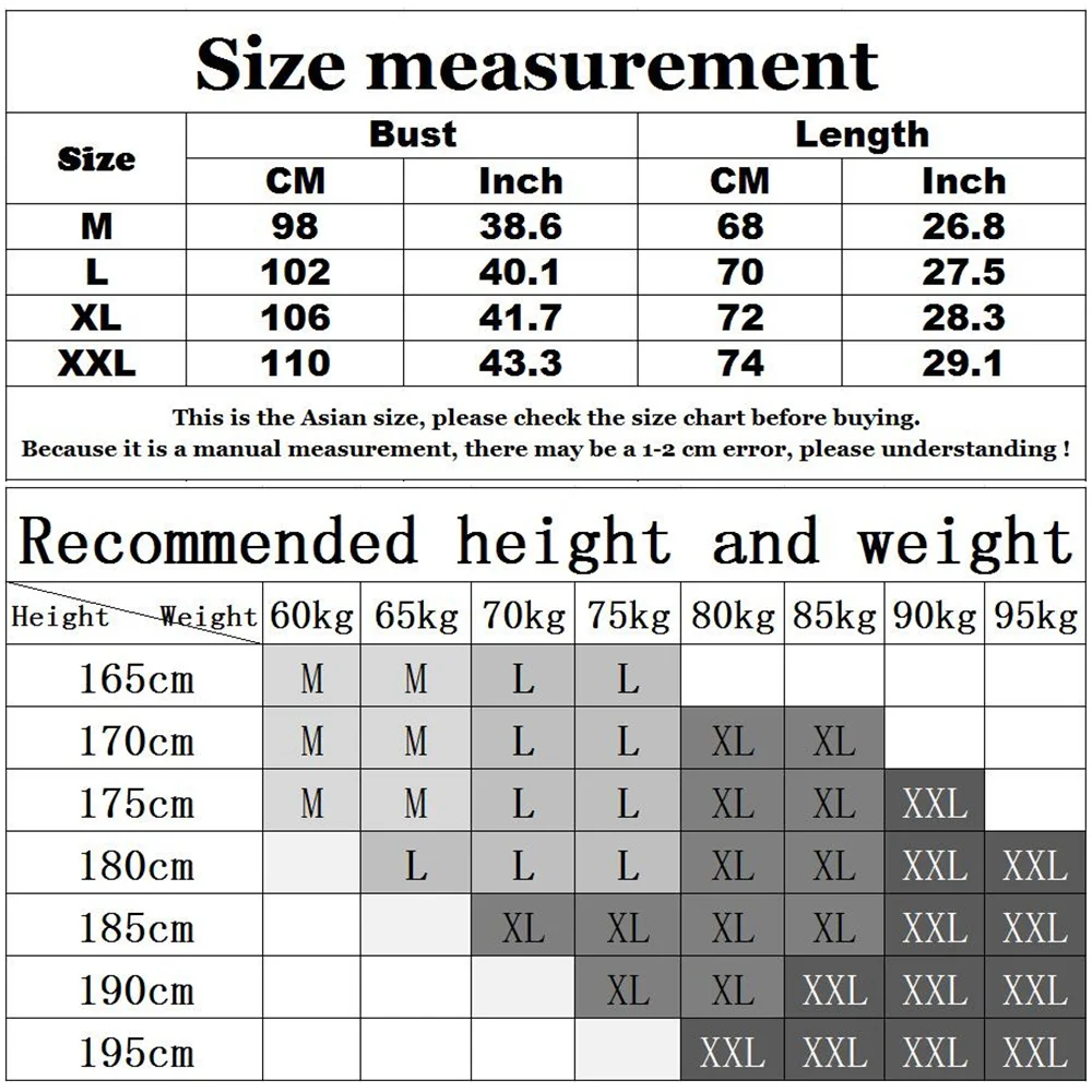 Опишите размеры продукта, включая различные размеры skus. Поскольку тело каждого человека отличается, рекомендуемый рост и вес можно использовать только в качестве справочной информации. Если вы не уверены, какой размер выбрать, Пожалуйста, свяжитесь с нами!