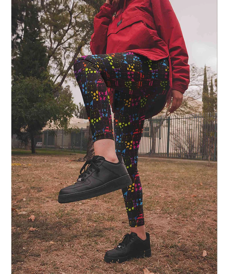 Леггинсы с милым принтом кота собаки летучей мыши, неоновые леггинсы для тренировок, фитнеса, для женщин и девочек, мягкие Эластичные Обтягивающие Брюки с высокой талией