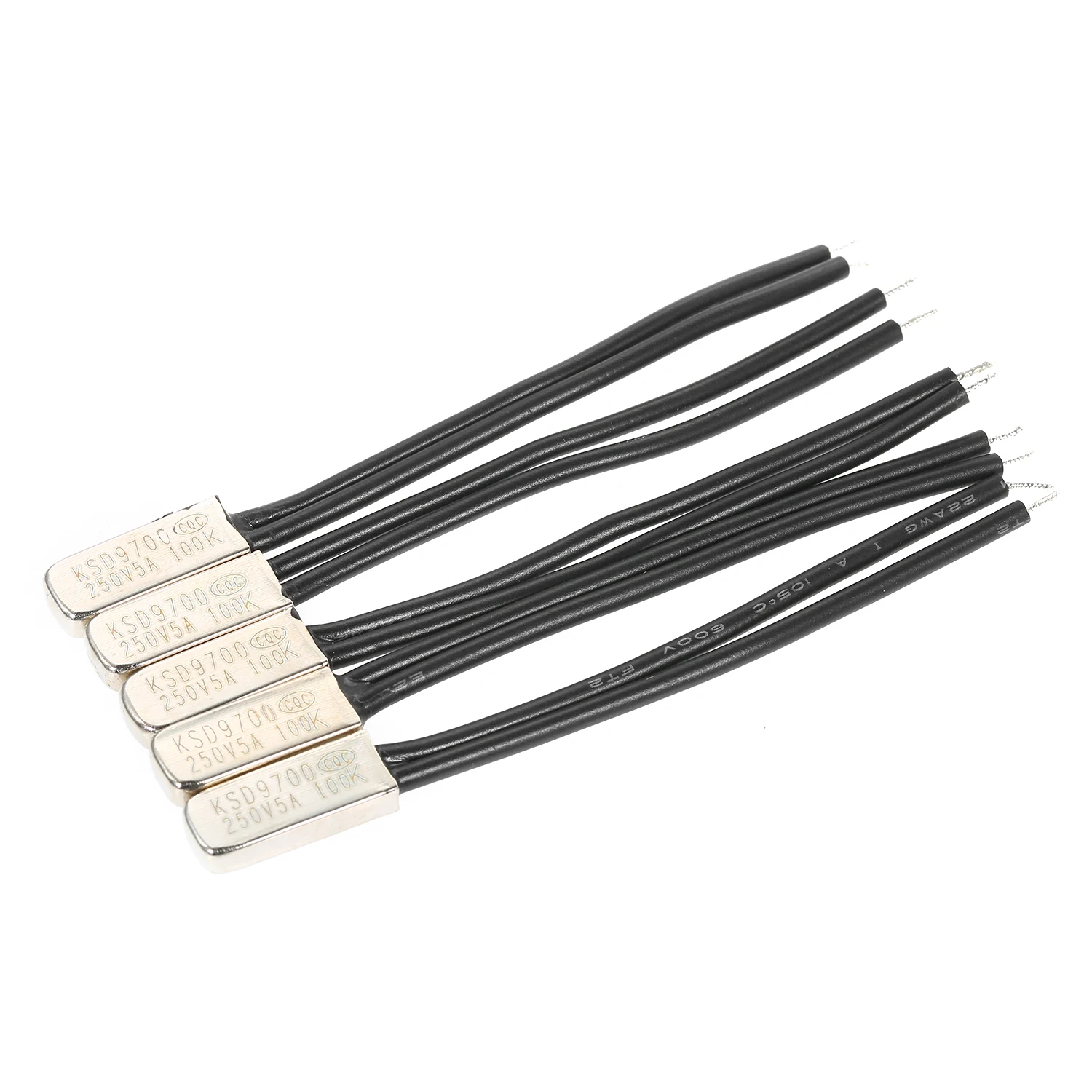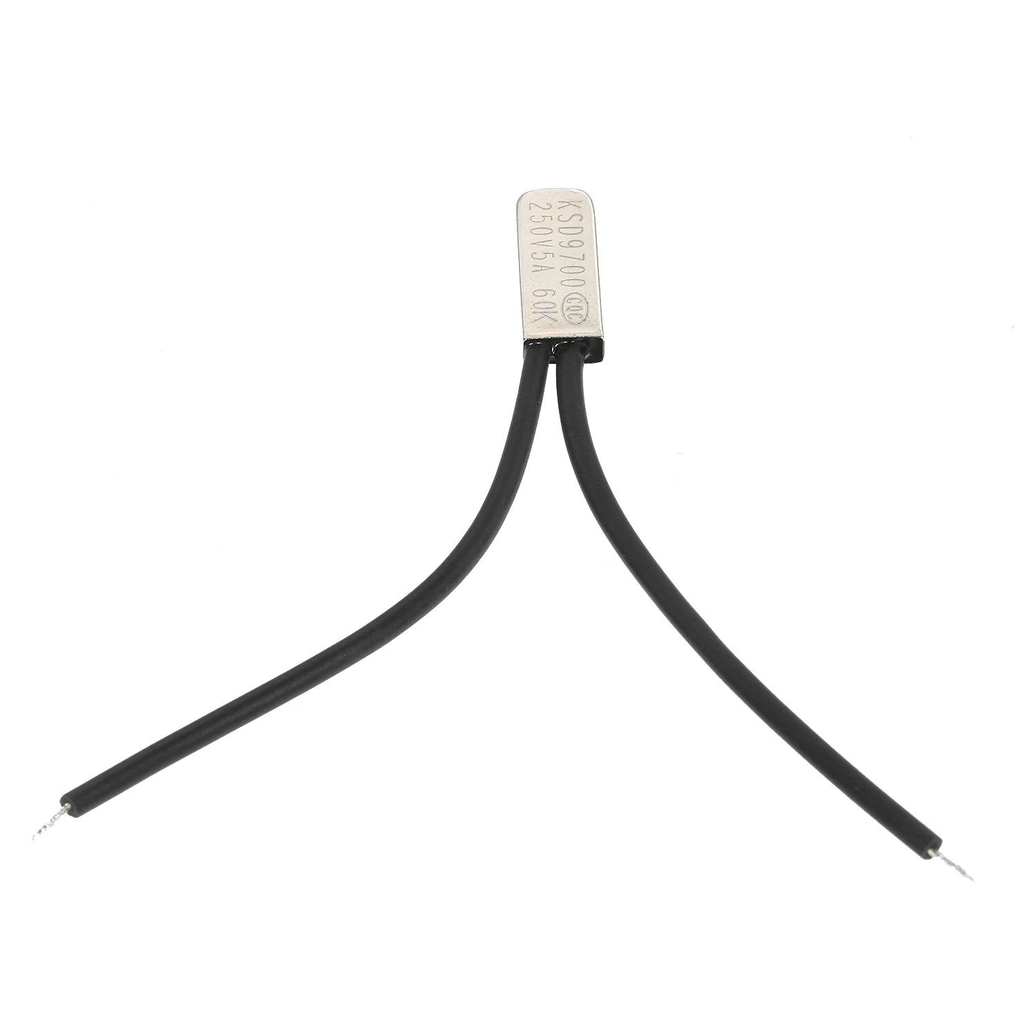 Термозащита серии 9700 состоит из высокочувствительного биметаллического диска, подвижного контакта, статического контакта, фиксированного основания, корпуса и термостойкого провода. При работе биметаллическая пластина находится в свободном состоянии, подвижный контакт закрыт статическим контактом, и цепь включена. Когда температура электрического прибора поднимается до рабочей температуры теплового протектора из-за разогрева, биметаллическая пластина нагревается и производит внутреннее напряжение и быстро двигается, отсоедините движущийся контакт от статического контакта и отсоедините цепь, Таким образом, отключает источник питания электрического устройства и играет роль защиты электрического прибора. Когда температура защищенного прибора падает до номинального значения температуры сброса теплового протектора, биметаллическая полоса возвращается в исходное состояние и контакт закрывается, и устройство возвращается к нормальной работе.