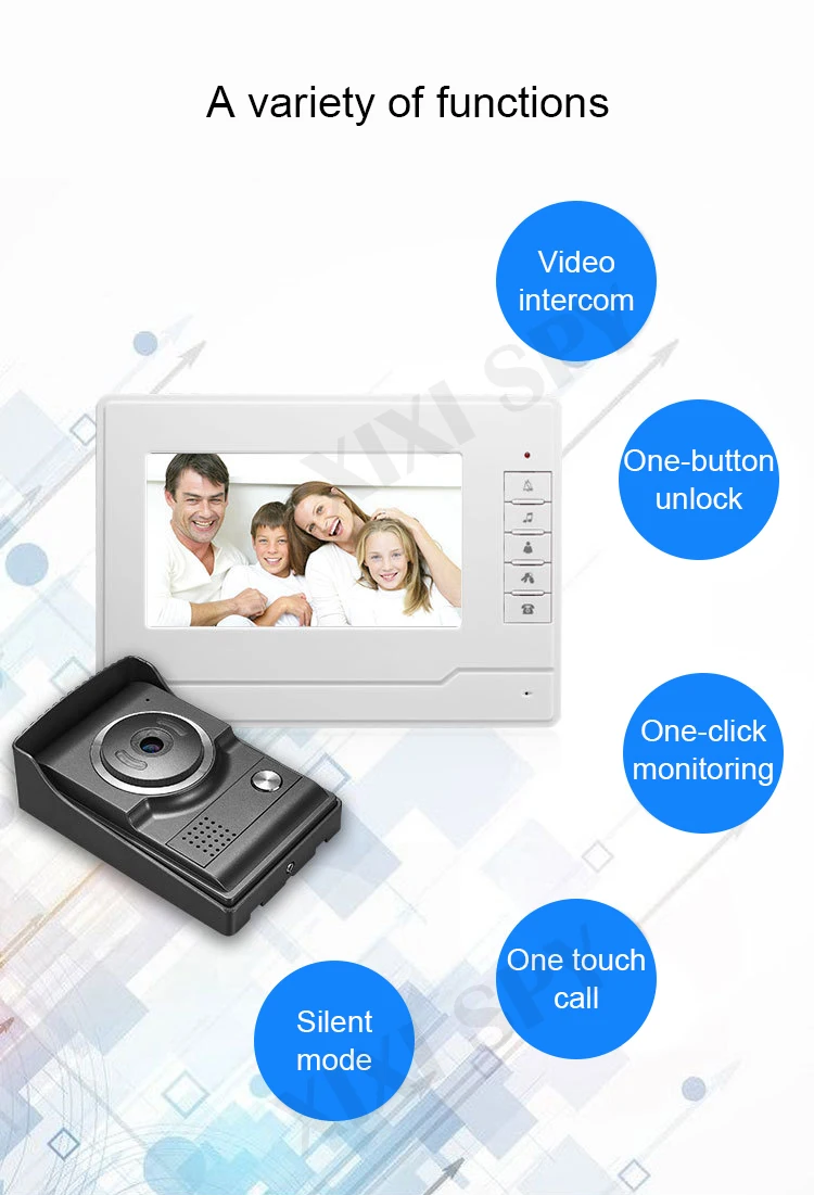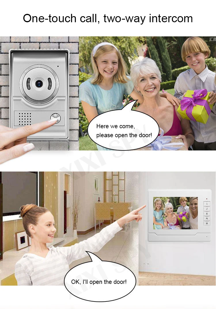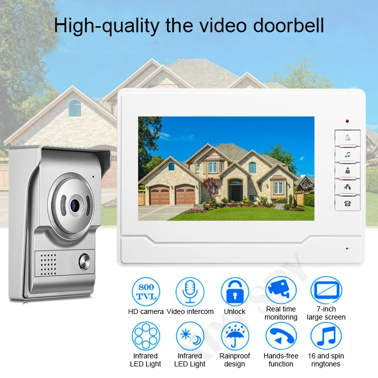 HD камера Видеодомофон Разблокировка Мониторинг в режиме реального времени 7 дюймов с большим экраном Инфракрасный светодиодный светильник Ночное видение Водонепроницаемый дизайн Функция громкой связи 16 и отжим мелодии