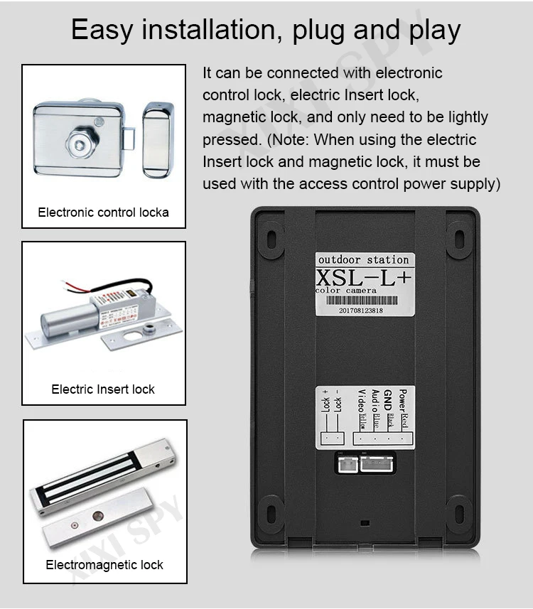 Он может быть подключен к электронному замку управления, электрическому замку вставки, магнитному замку, и его нужно только слегка прижать. (Примечание: При использовании электрического замка вставки и магнитного замка, он должен использоваться с источник питания с контролем доступа) Электронный блок управления Электрический вставить Стопорную Электромагнитный замок