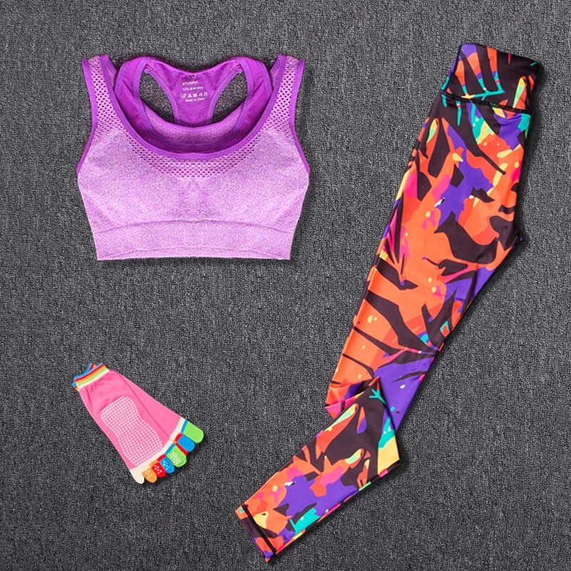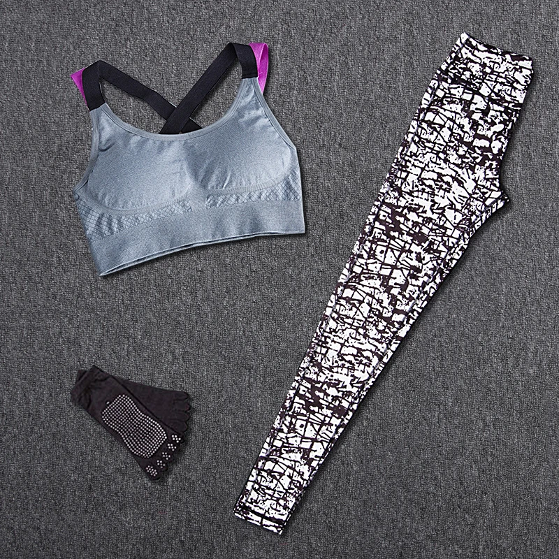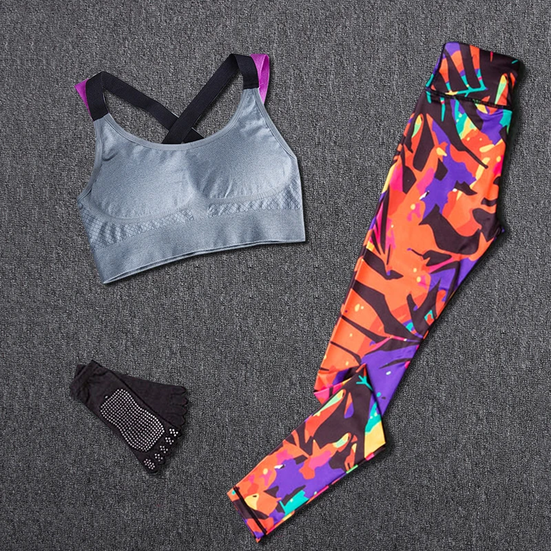 Спортивная одежда для женщин из трех предметов (лента для волос + жилет + брюки), женский комплект одежды для занятий йогой с принтом, спортивная одежда для фитнеса
