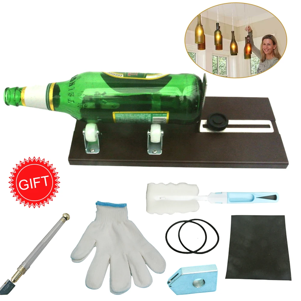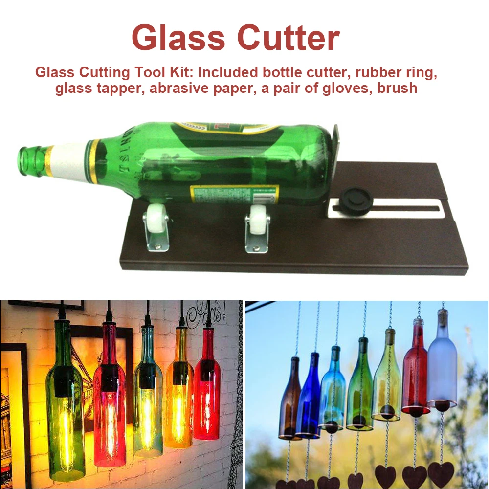 Набор инструментов для резки стекла: В комплект входит резак для бутылок, резиновое кольцо, пеньковая веревка, стеклянный нож, оригинальная режущая долота, стекловолокно, двухсторонняя отвертка, абразивная бумага, пара перчаток, кисть
