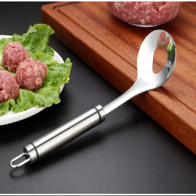 Тефтели могут быть образованы, нажав на ложку, быстро и эффективно. Пищевой материал из нержавеющей стали 304, не содержит ржавчины и долговечен. Гладкая ручка делает ее более удобной. Подвесной дизайн, который более удобен и экономит пространство.